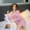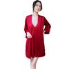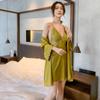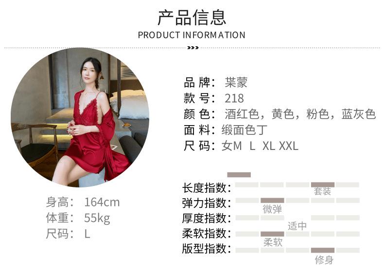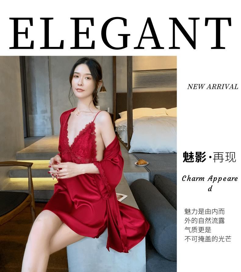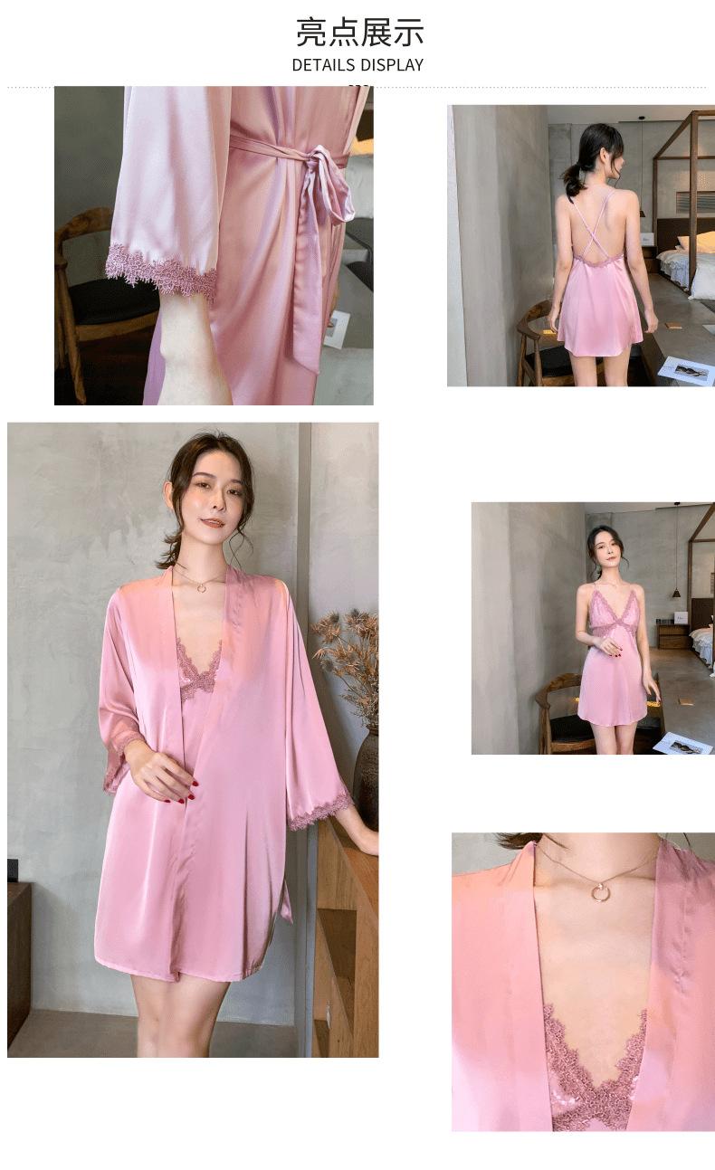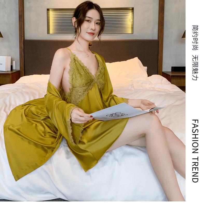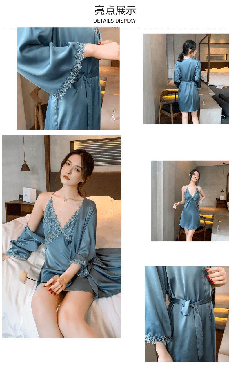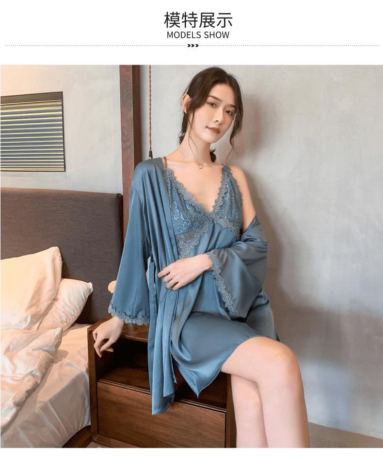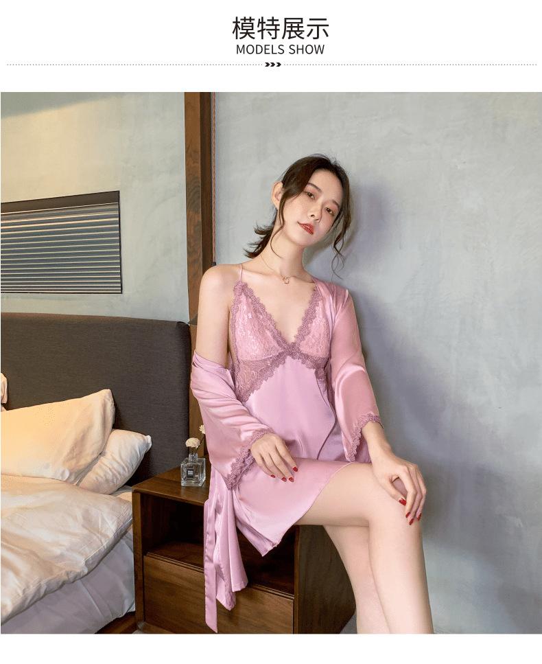 Camisón Sexy de Satén Fino Transfronterizo para Mujer, Conjunto de Dos Piezas con Camisola de Encaje, Ropa de Dormir de Seda de Manga Larga, Camisón Sexy