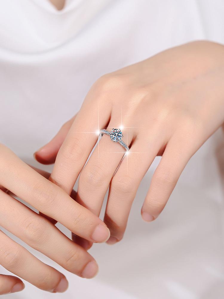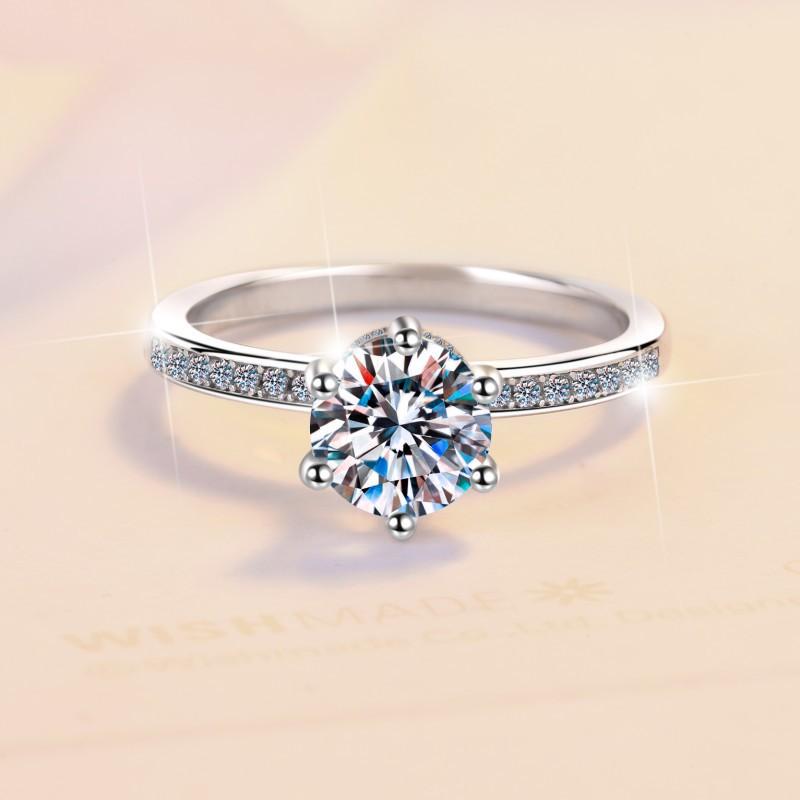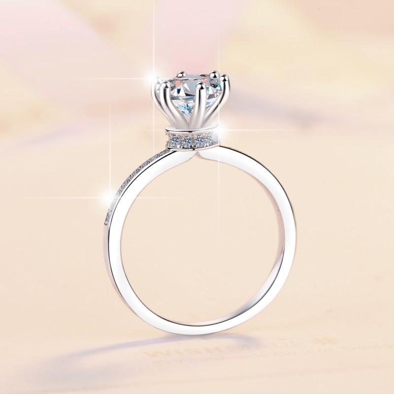 Anillo de Plata Esterlina S925 Anillo de Quilates de Seis Garras de Moda Venta Caliente Transfronteriza Transmisión en Vivo Moissanita Anillo de Boda para Mujer Fabricante Mayorista