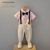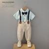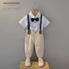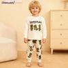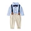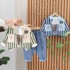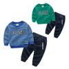 Traje de otoño e invierno para niños transfronterizo, camisa de manga larga a rayas de algodón, pantalones casuales, ropa para niños, entrega de una pieza