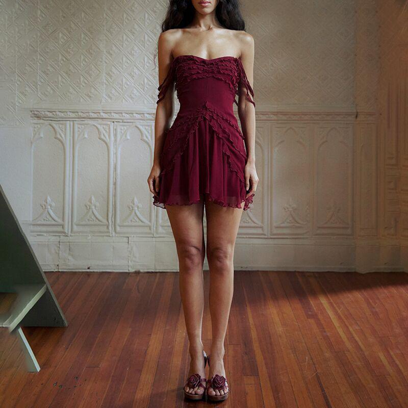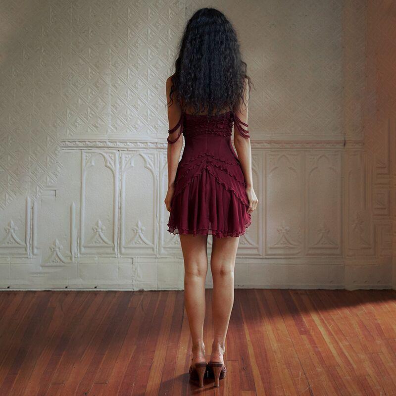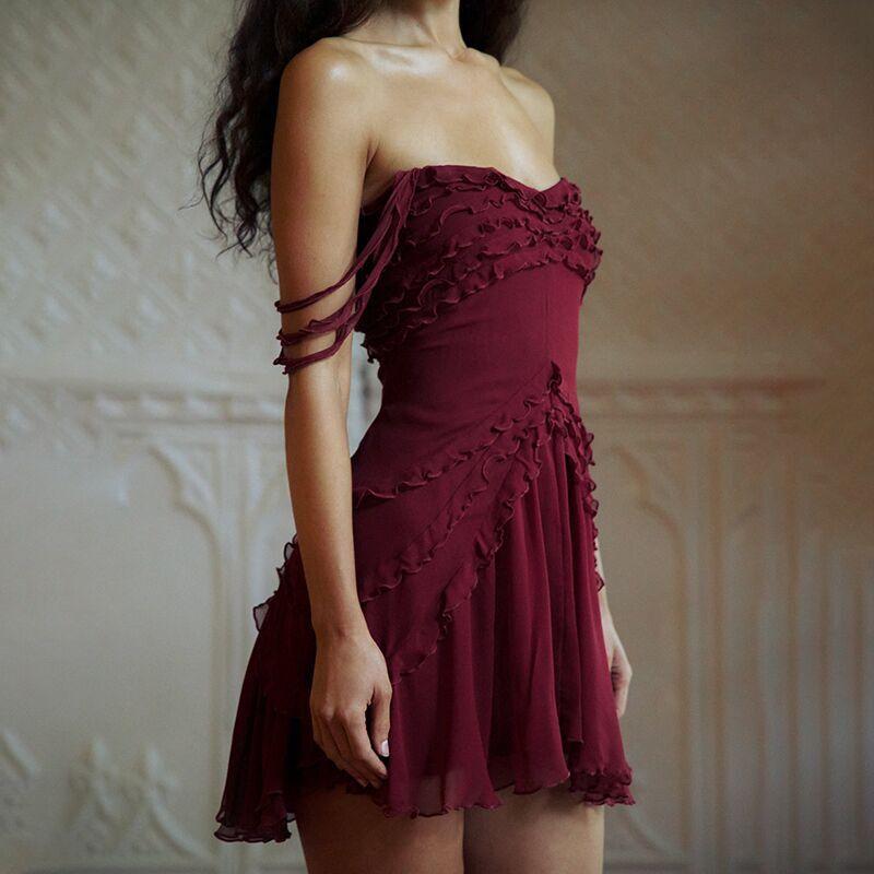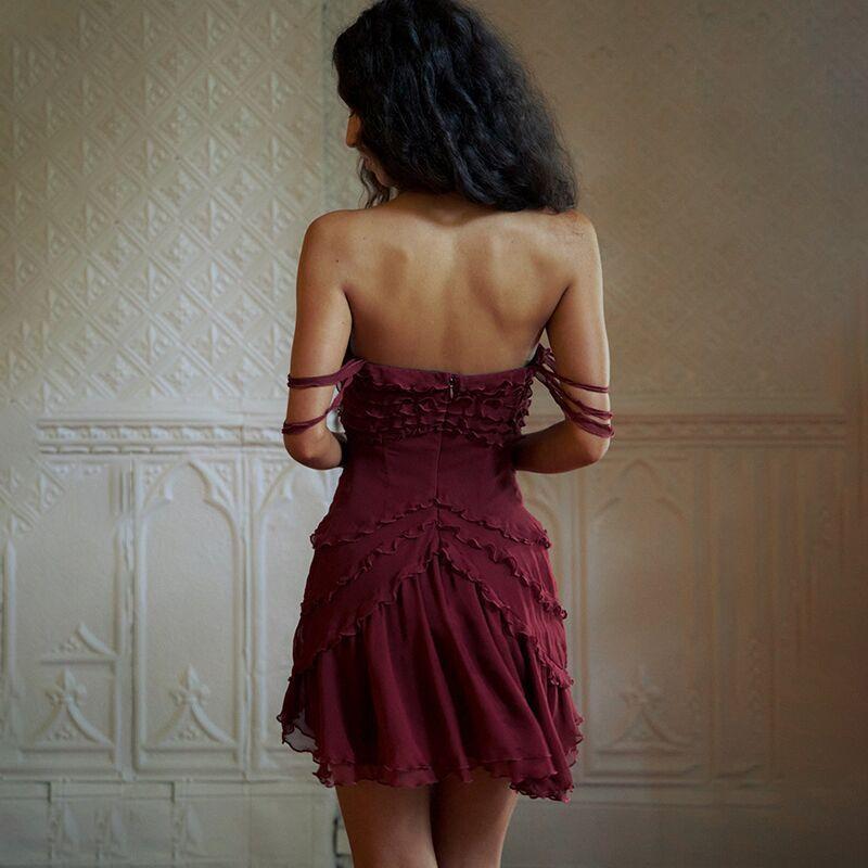 Tendencia de primavera y verano 2024 Nuevo vestido de capas sexy chica caliente falda de tirantes sin espalda falda de gasa de mujer