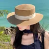 Sombrero de paja francés de copa plana para mujer, nuevo sombrero de paja para verano, vacaciones en la playa, protección UV, sombrero para el sol en la playa.