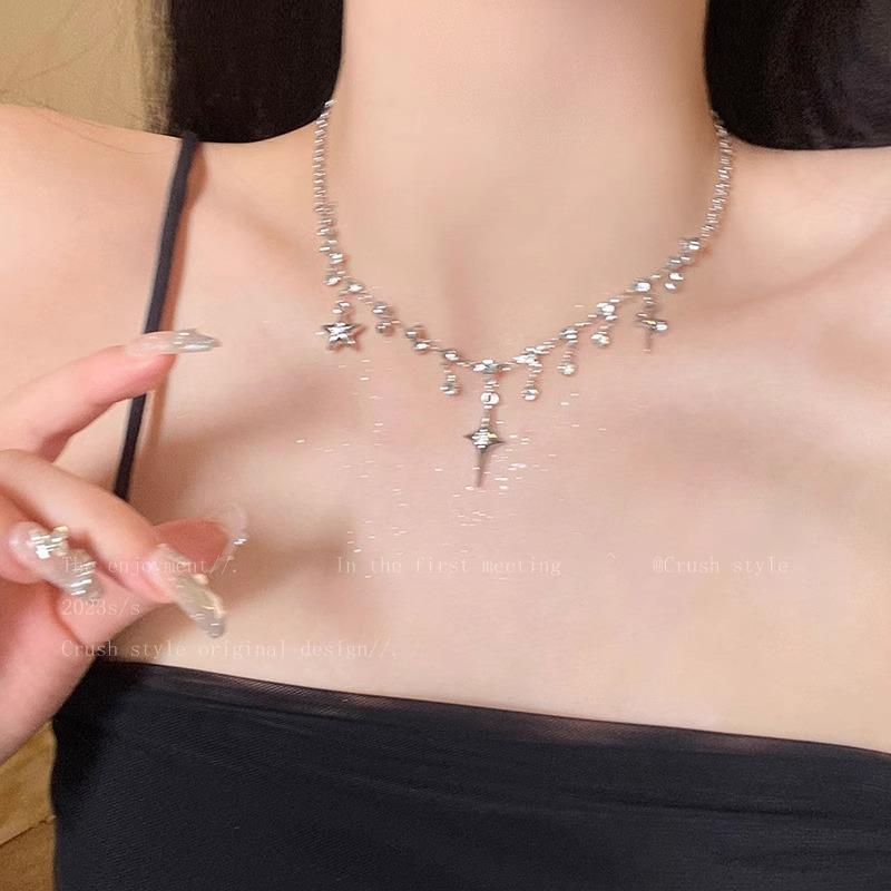 Collar de estrella para mujer, diseño de nicho, cadena de clavícula de lujo ligera de alta gama, collar con lazo, colgante para novia estudiante