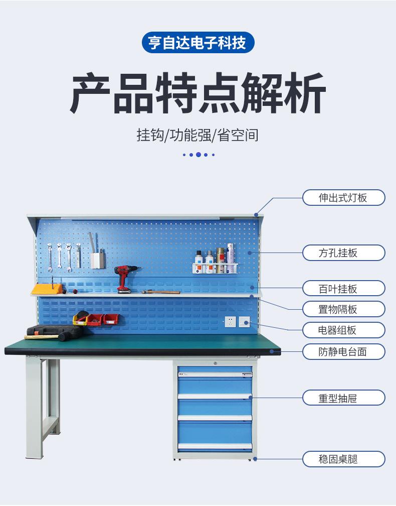 Banco de Trabajo Antiestático de Alta Resistencia con Luz Mesa de Operaciones Taller de Mantenimiento Electrónico Línea de Montaje de Fábrica Banco de Ajustador de Alta Resistencia