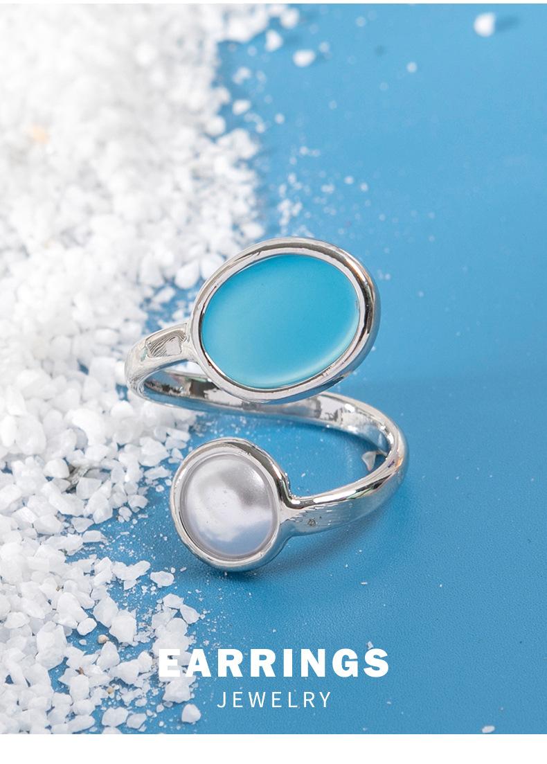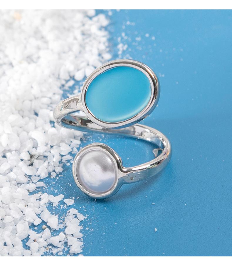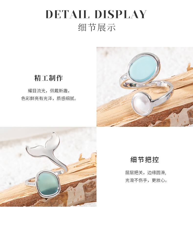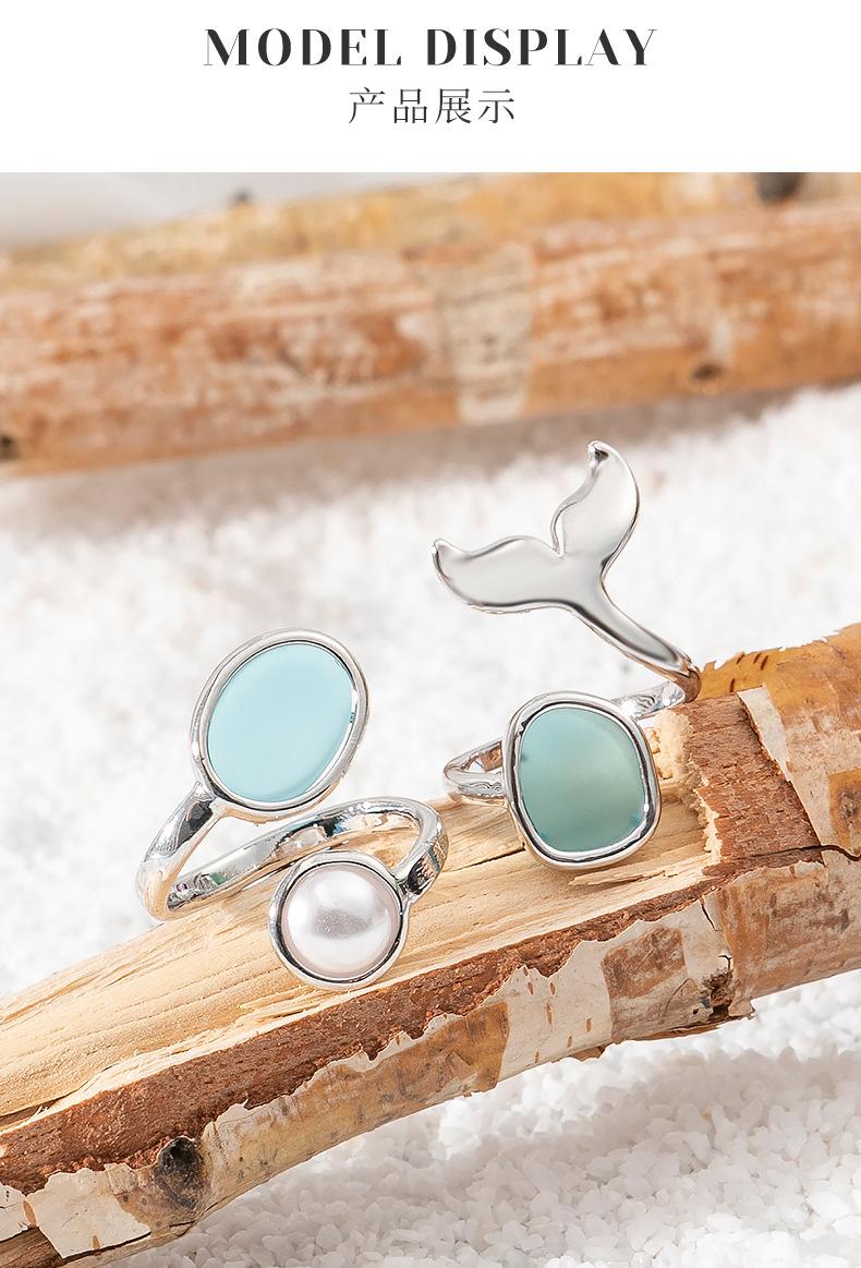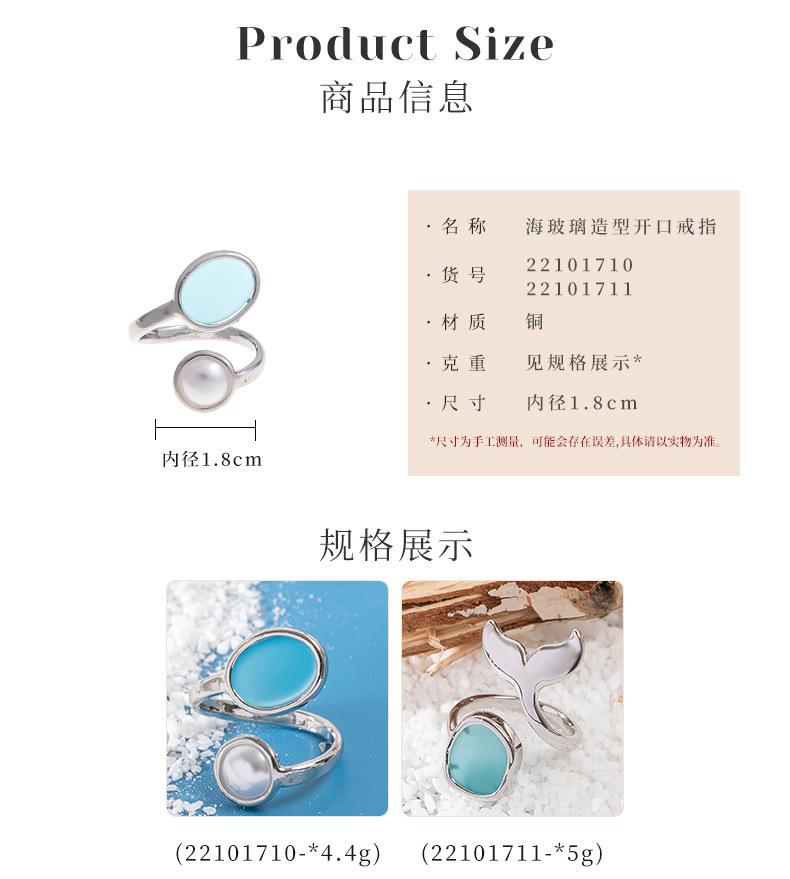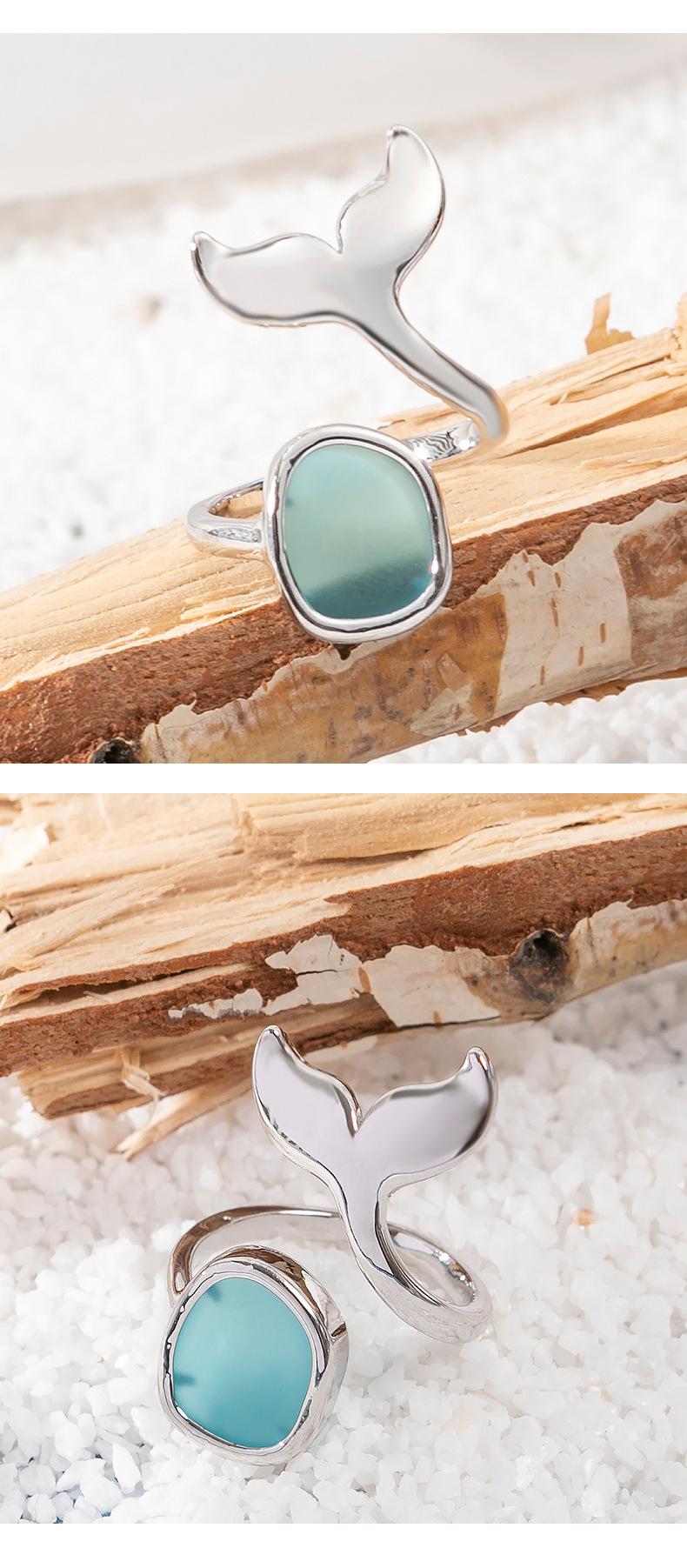 Anillo de vidrio marino con diseño de cola de pez humano, estilo ins femenino, anillo de apertura de metal de alto nivel, suministro transfronterizo al por mayor