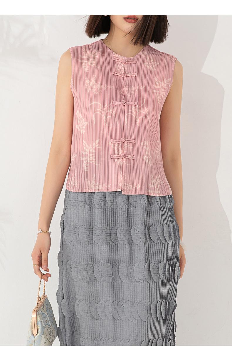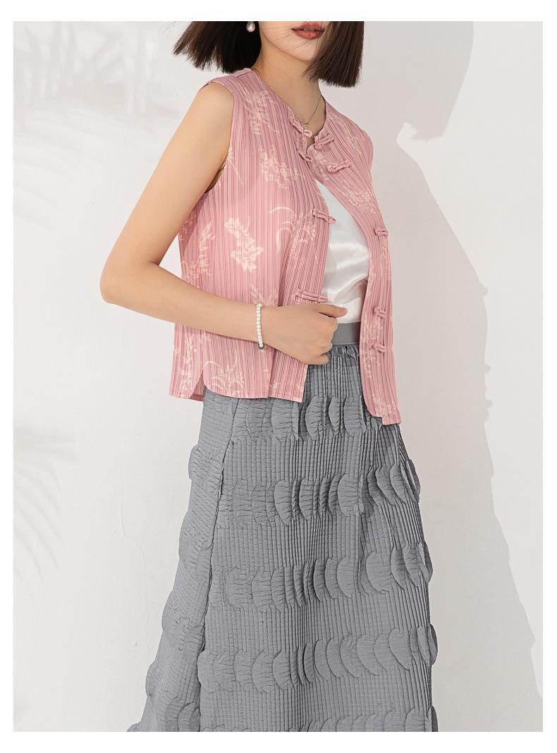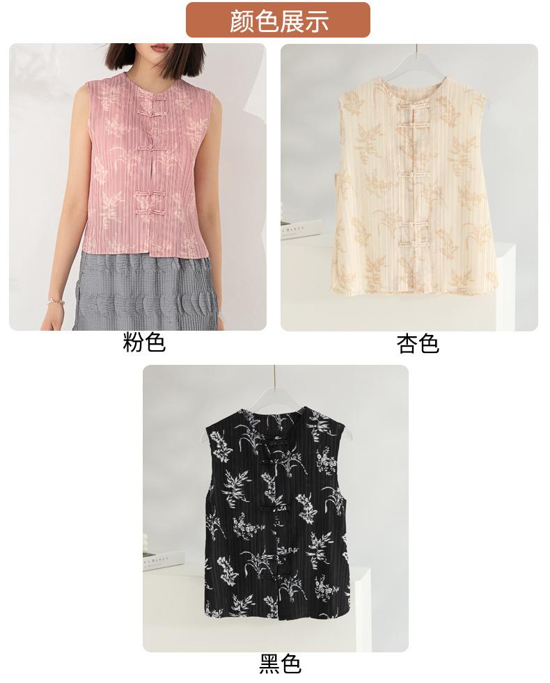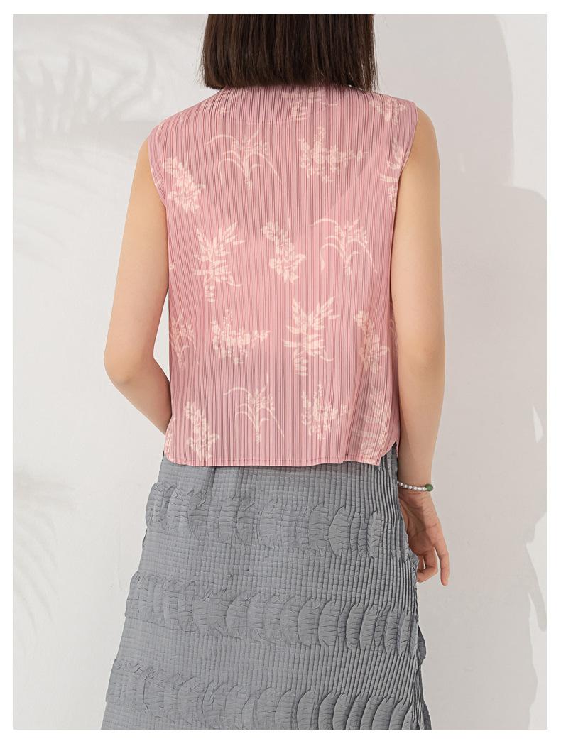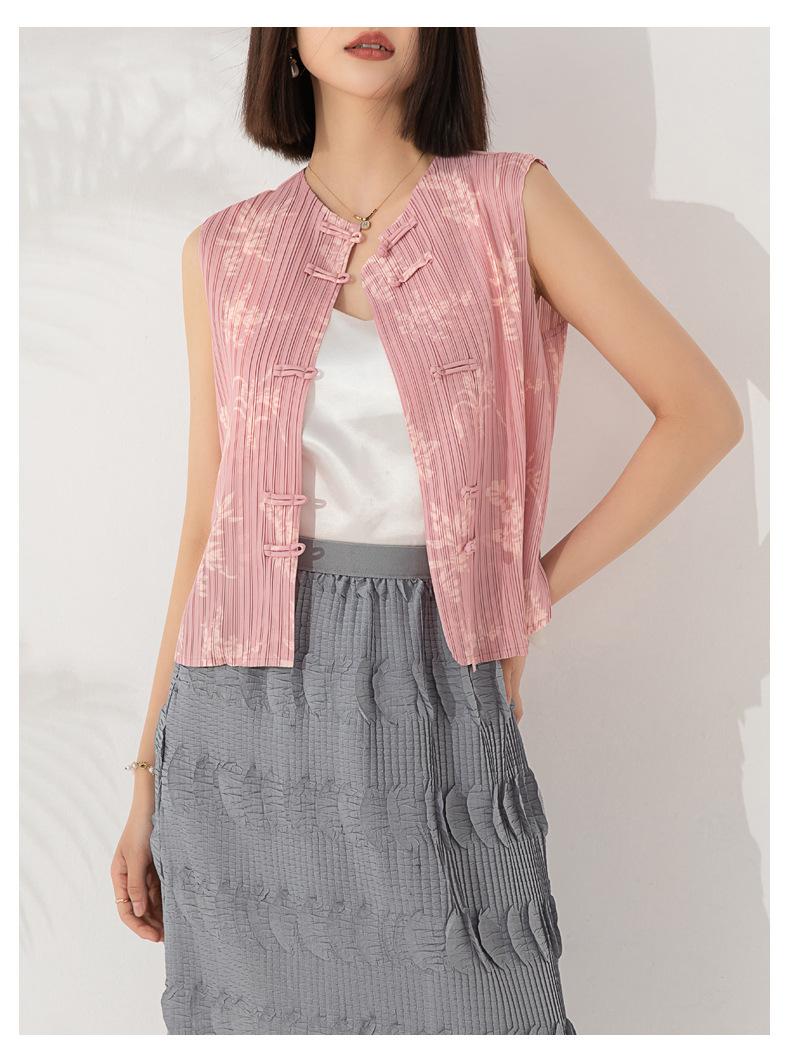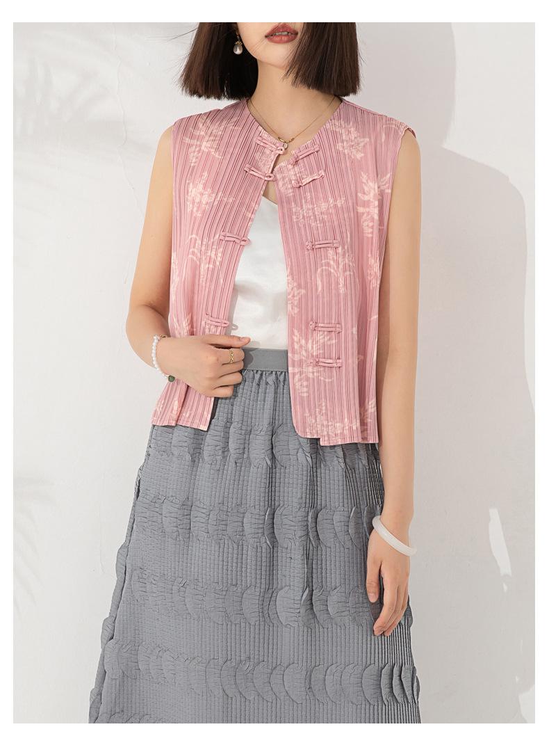 Chaleco plisado sin mangas para mujer, novedad de verano 2024, cárdigan de una sola fila con botones y estampado retro a la moda