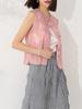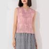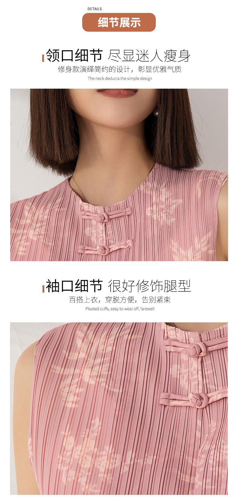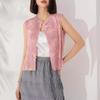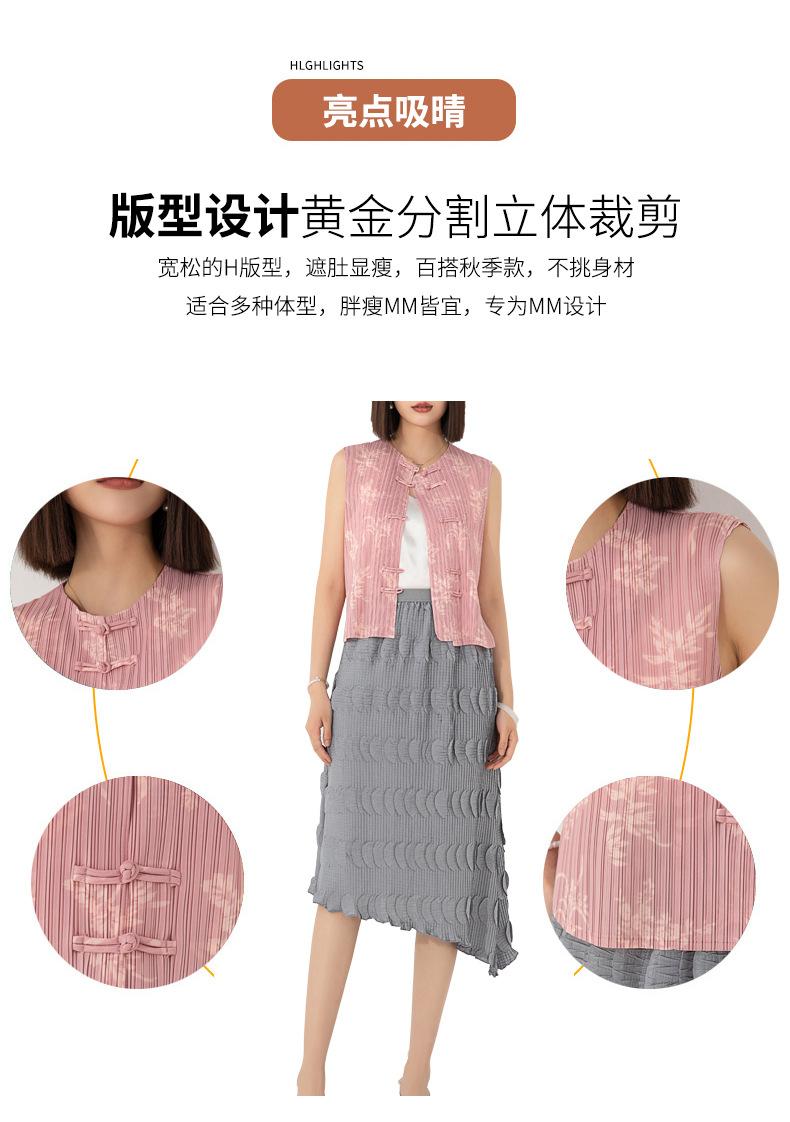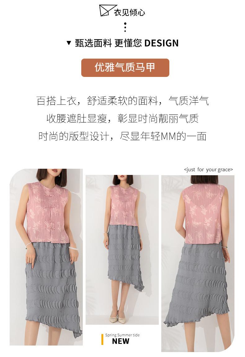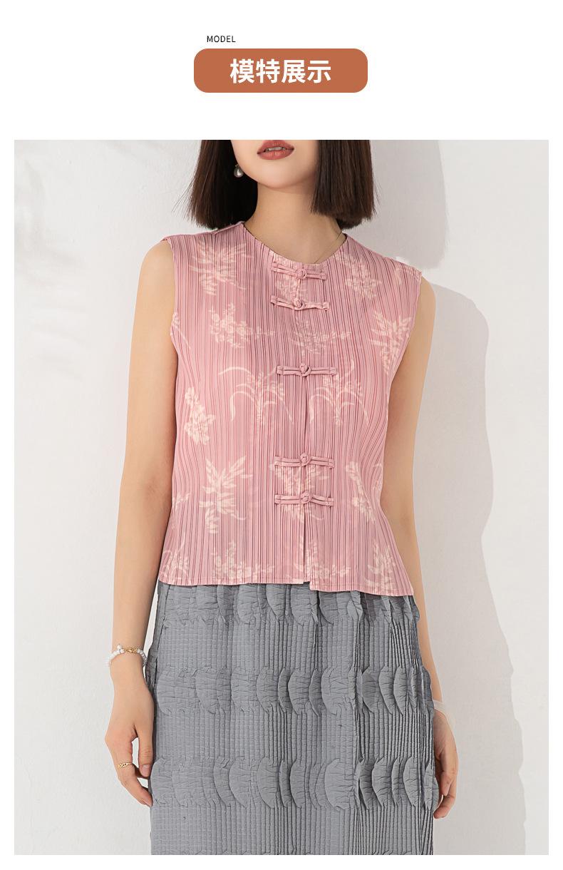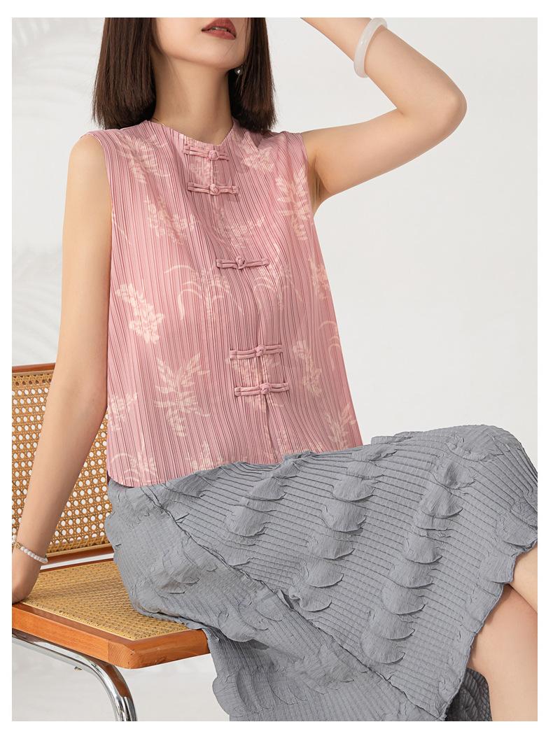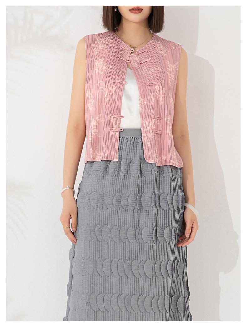 Chaleco plisado sin mangas para mujer, novedad de verano 2024, cárdigan de una sola fila con botones y estampado retro a la moda