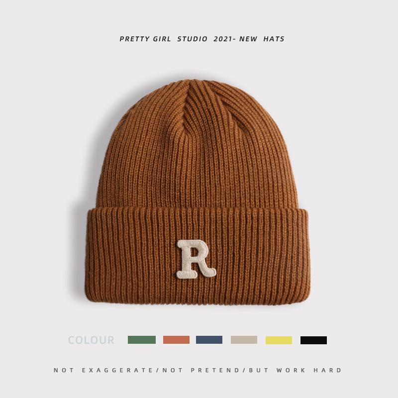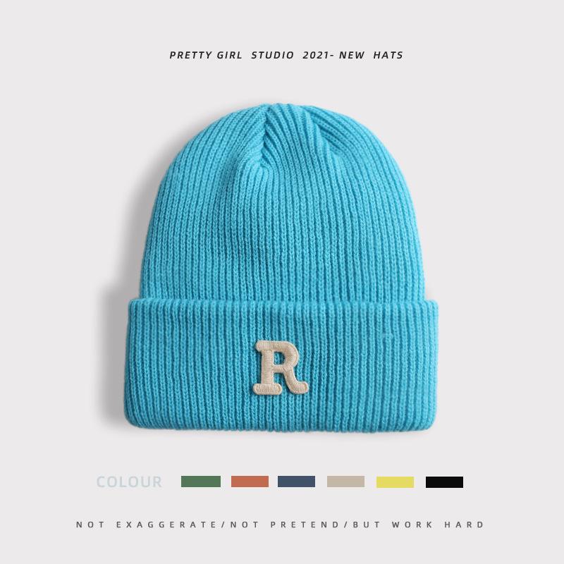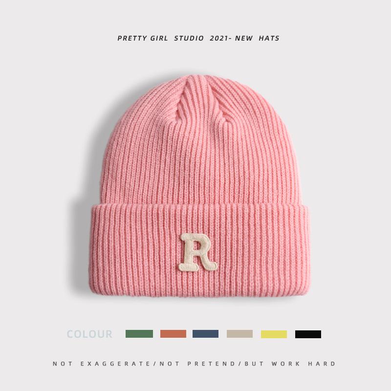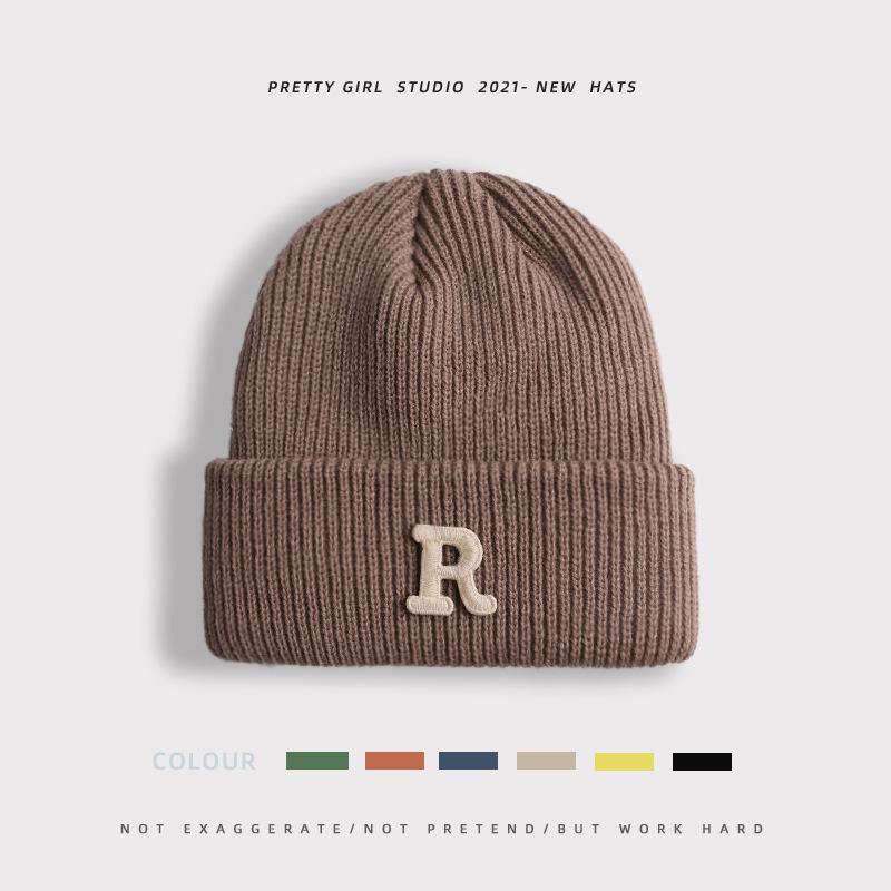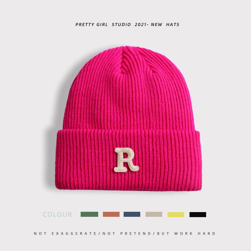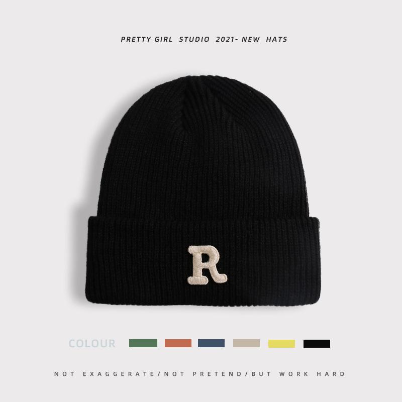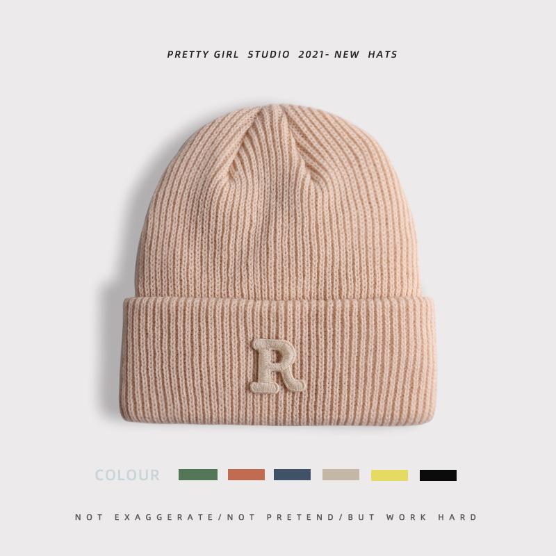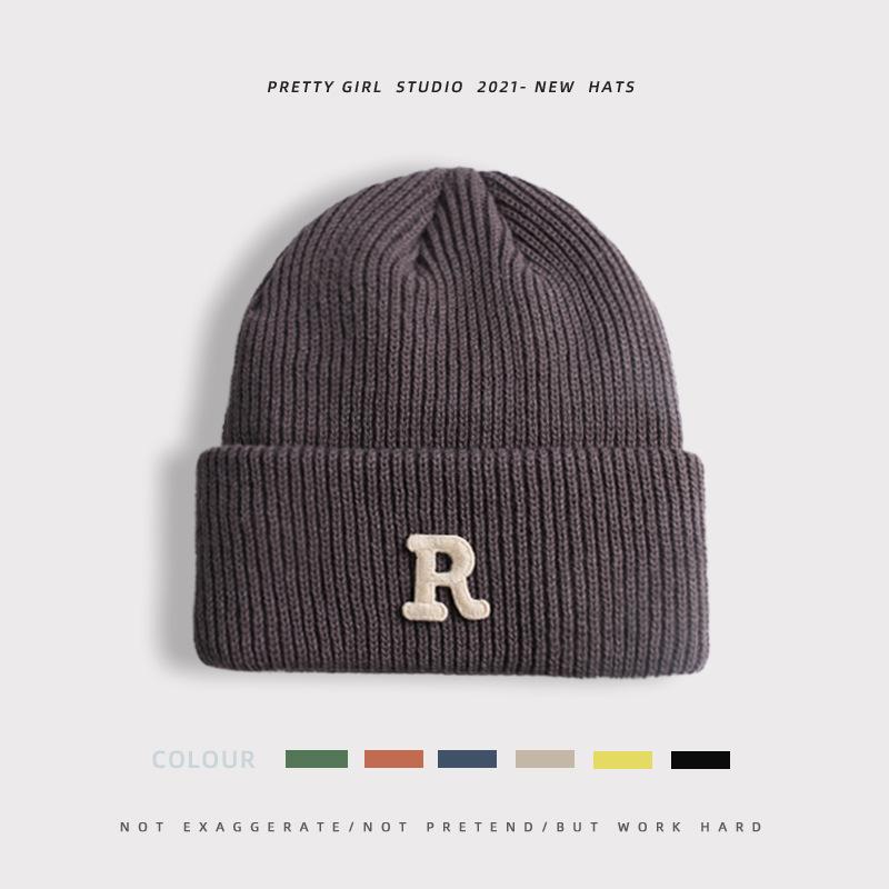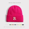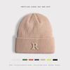 Gorro de lana de moda para mujer, gorro de punto con letra R coreana, cálido, para estudiantes, con protección para los oídos, para el frío, para otoño e invierno