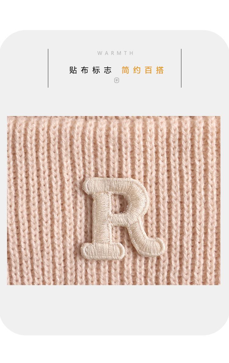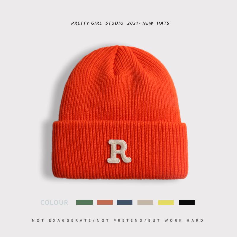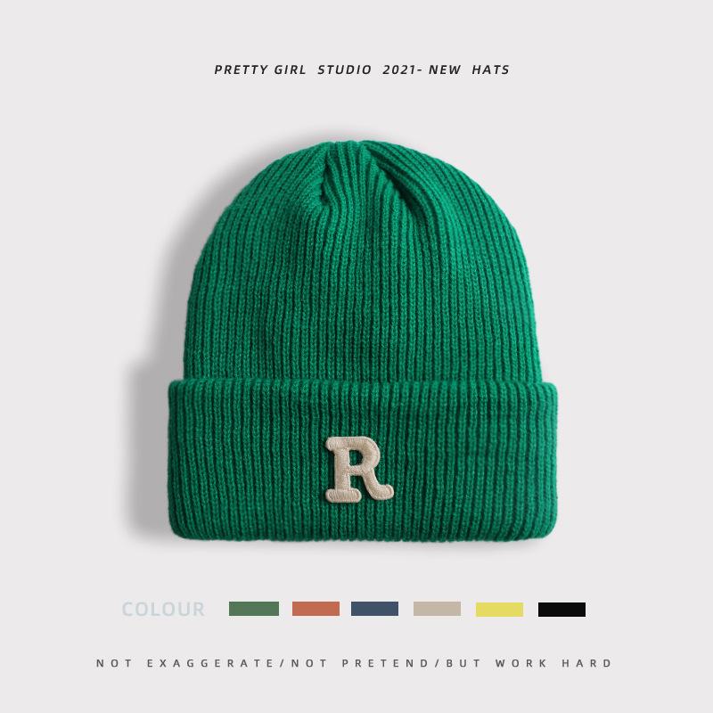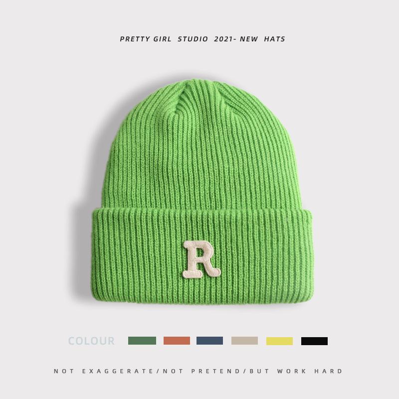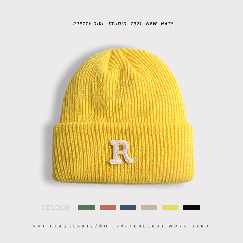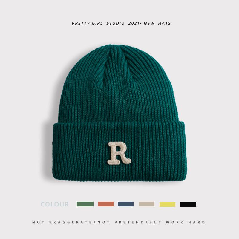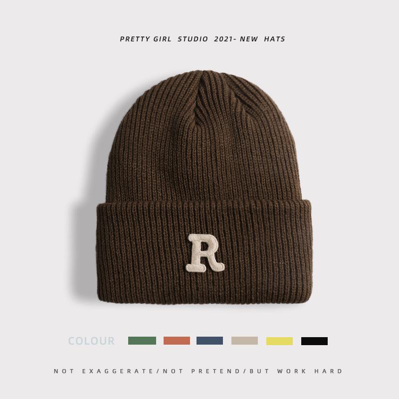 Gorro de lana de moda para mujer, gorro de punto con letra R coreana, cálido, para estudiantes, con protección para los oídos, para el frío, para otoño e invierno