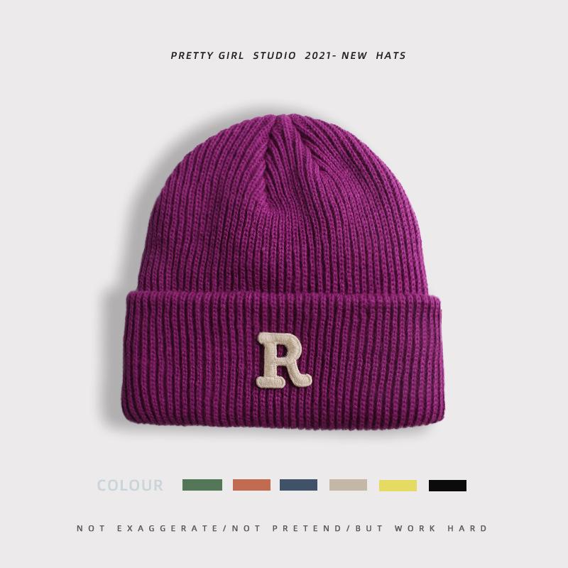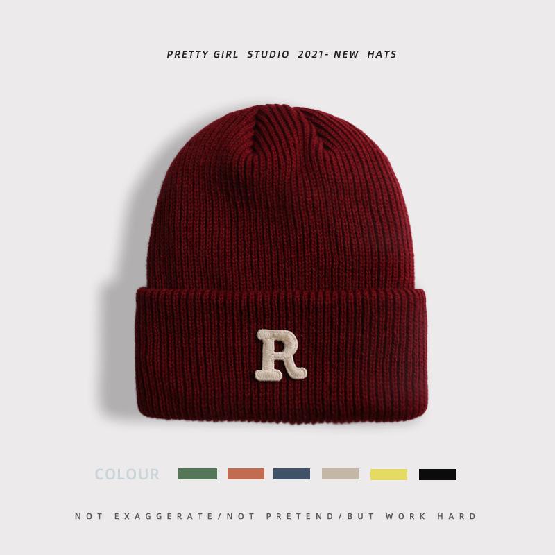 C0428 Tong Jin Mi R Label Knitted Wool Cap sg Grey, C0428 Tong Jin Mi R-labeled knitted wool cap sg wine red, ...