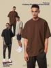 340g Algodón Puro Escote Pequeño Color Tierra Holgada Manga Corta Camiseta para Hombre y Mujer Versión Grande Marca de Moda Urbana Camiseta Logotipo Personalizado