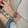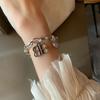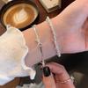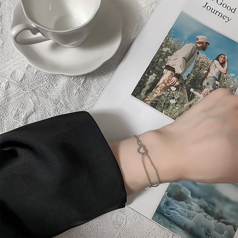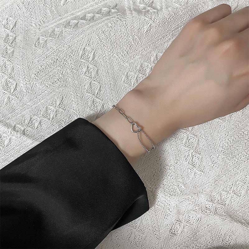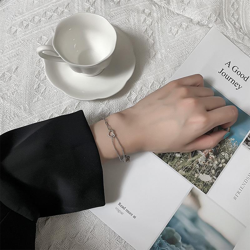 Pulsera de Plata S925 para Novia para Mujer Estilo Dulce y Cool de Estilo Japonés Personalidad Artística Empalmada de Doble Capa Pulsera de Amor Hueca Ins