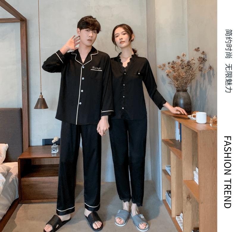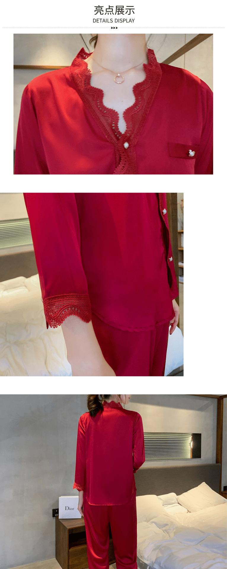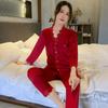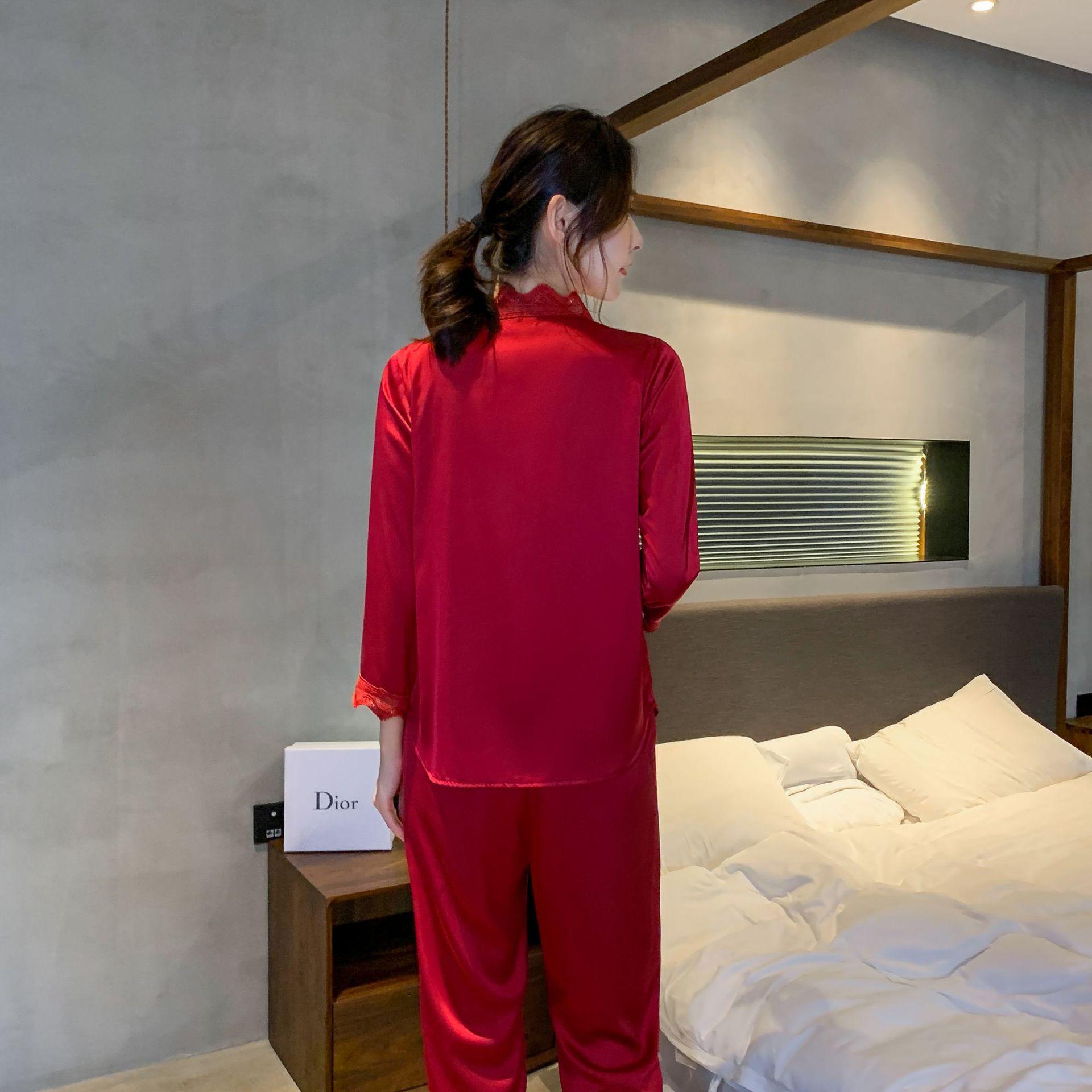 Pijama de satén de moda para mujer, cárdigan ajustado de seda de primavera y verano, conjunto de manga larga, ropa de hogar sexy de seda helada