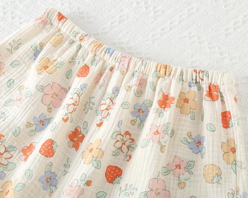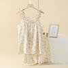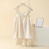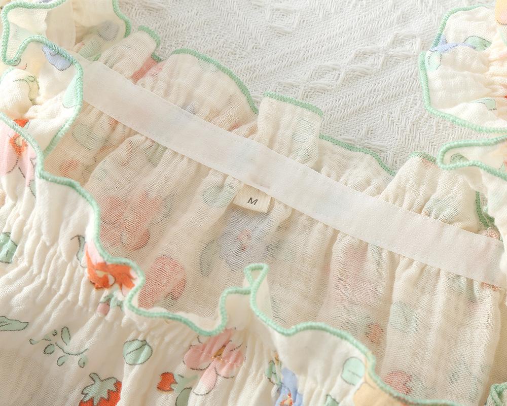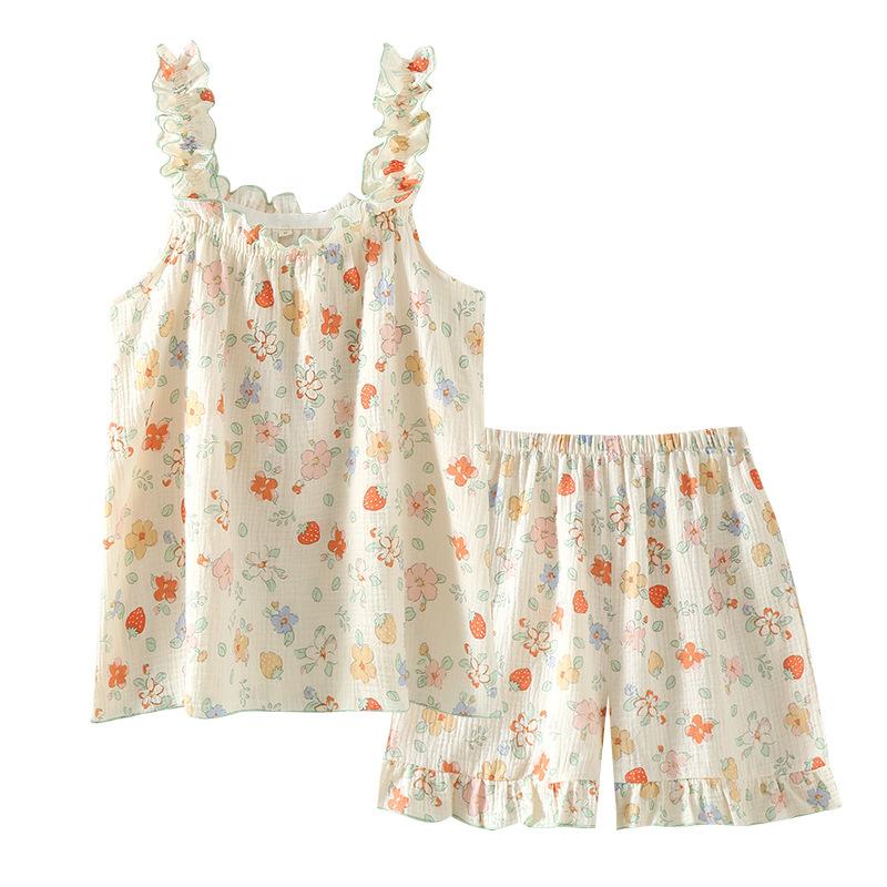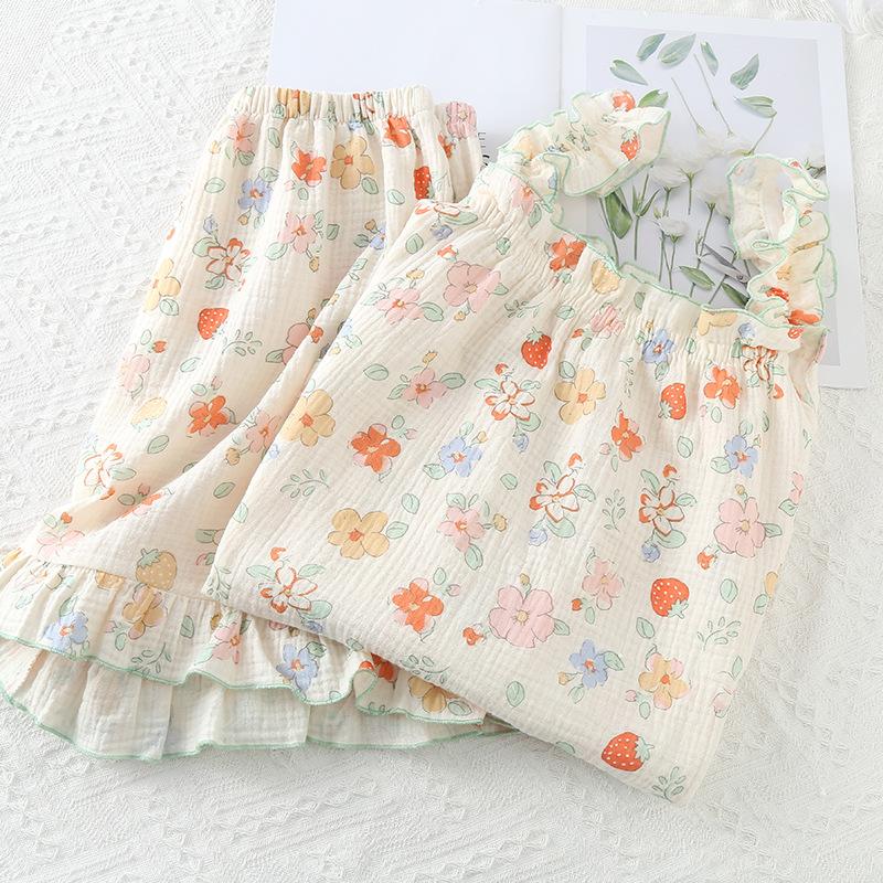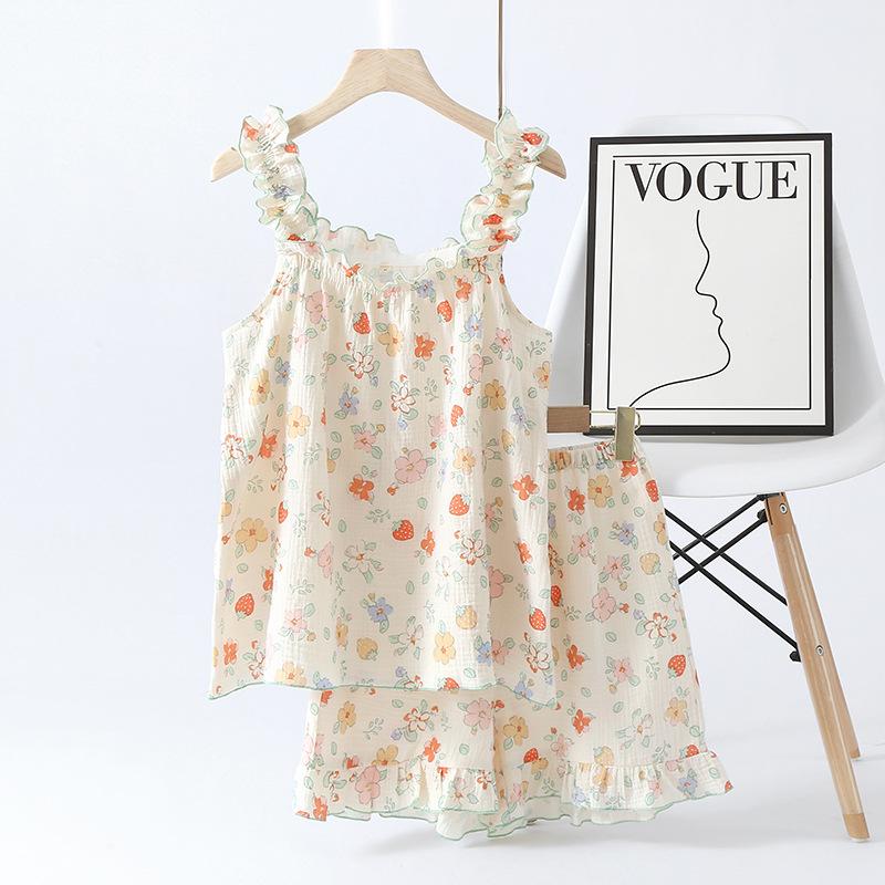 Pijama de verano para mujer, con estampado floral, de manga corta, de algodón puro y crepé.