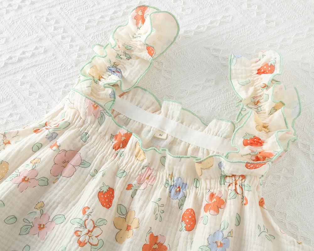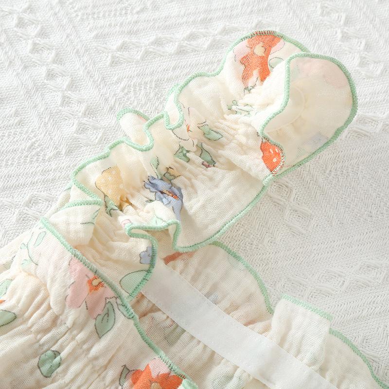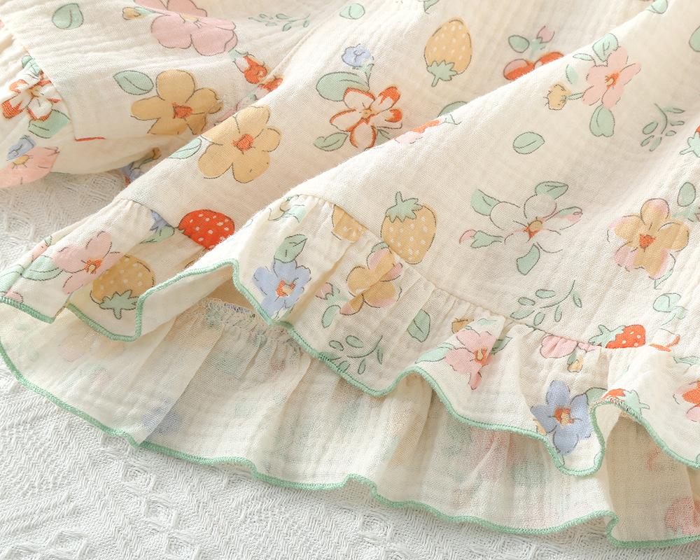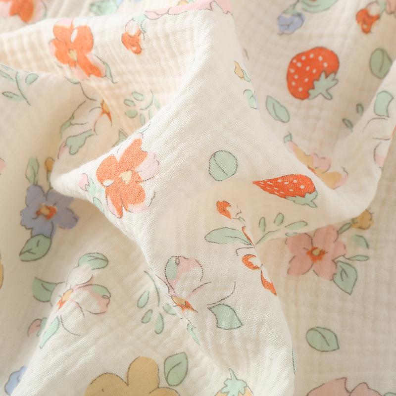 Pijama de verano para mujer, con estampado floral, de manga corta, de algodón puro y crepé.