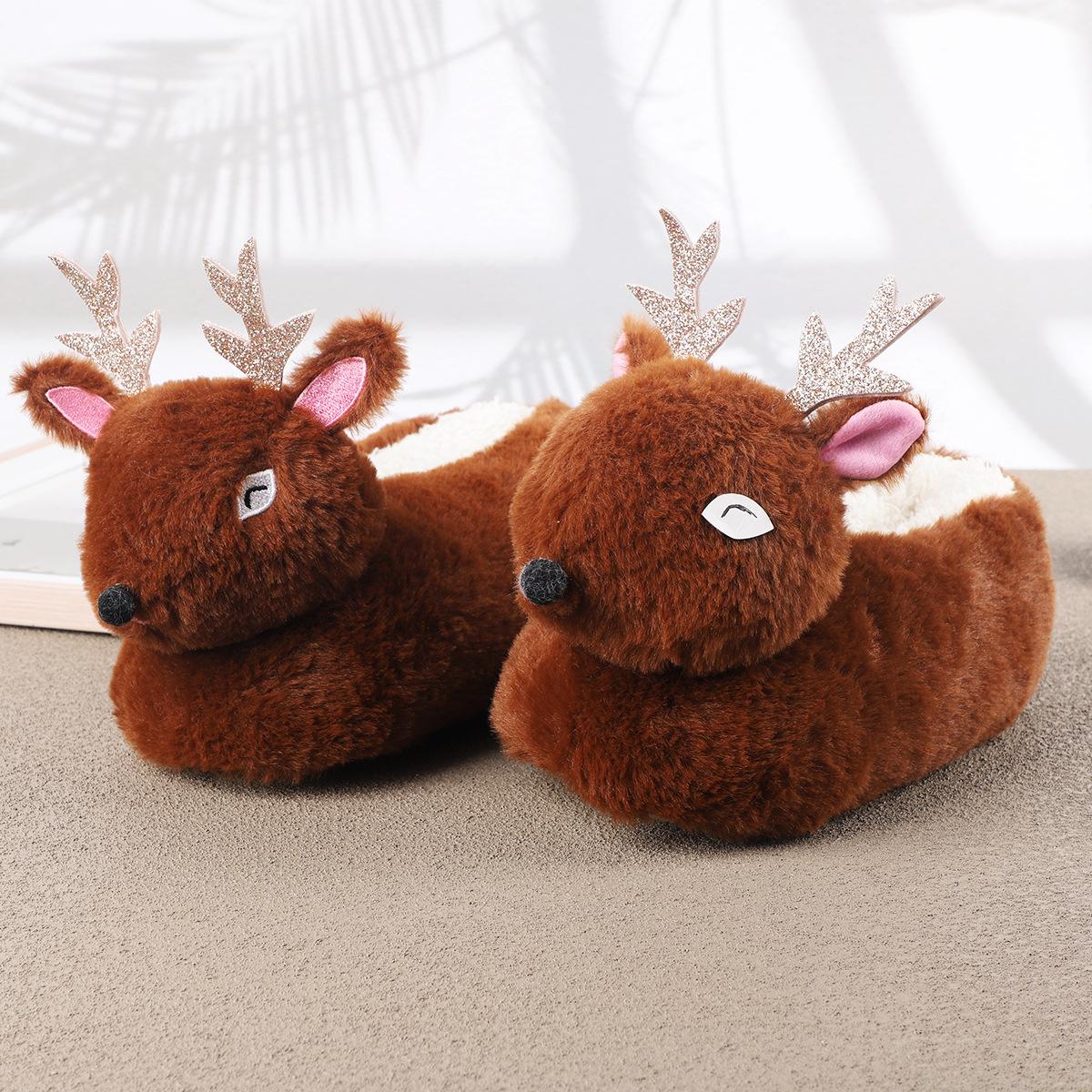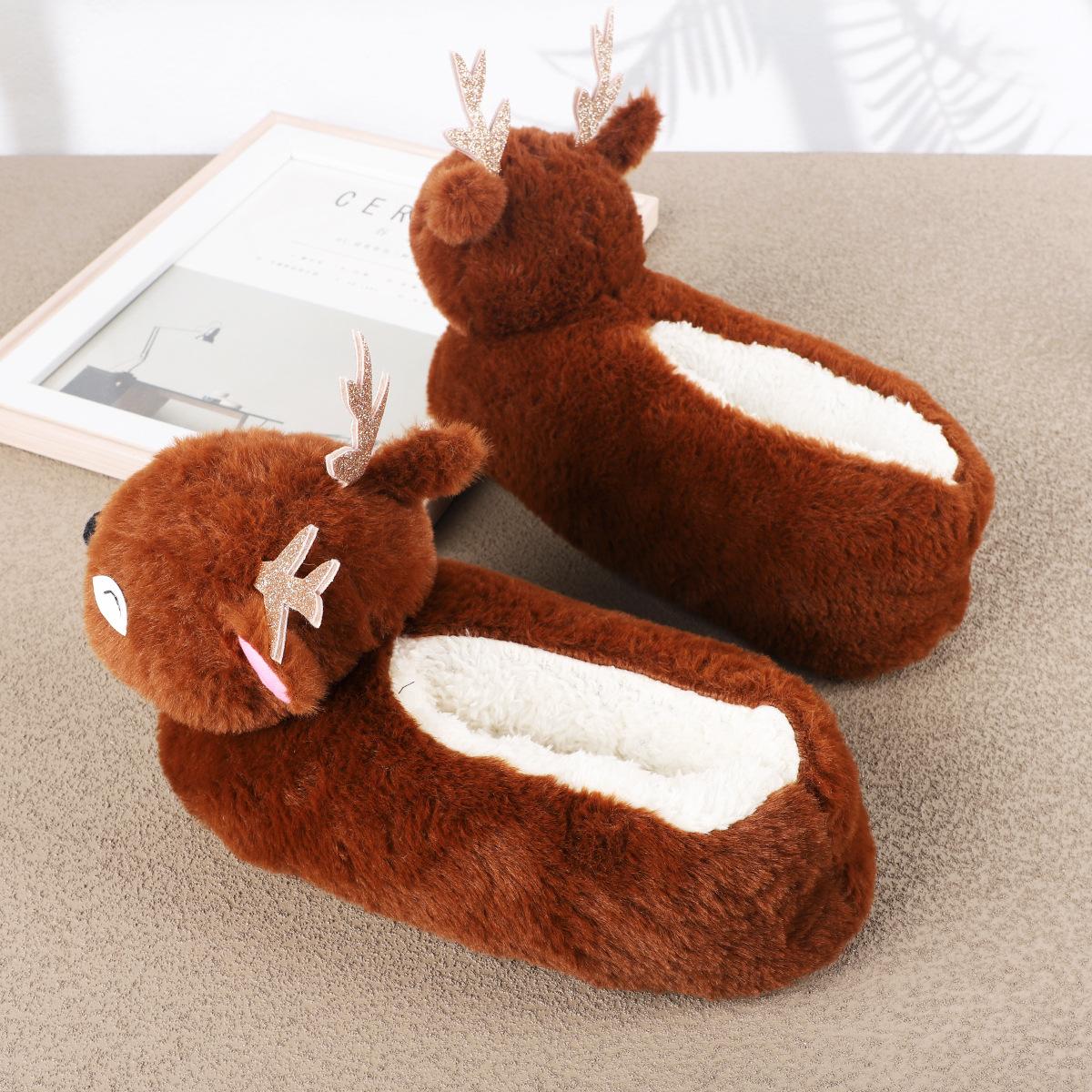 Pantuflas de Algodón para Mujer Invierno Estéreo Alce Dibujos Animados Lindo Forro Polar Engrosado Antideslizante Silenciosas Zapatos de Algodón Cálidos para Hombre para Casa