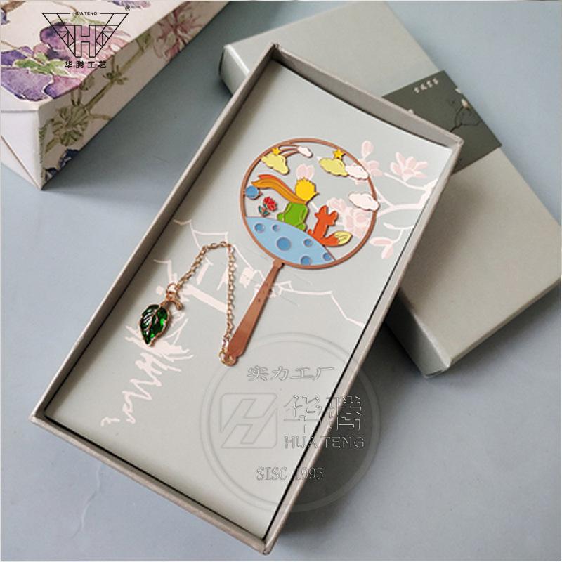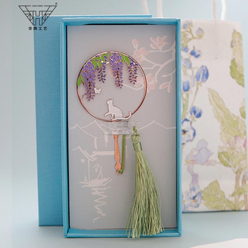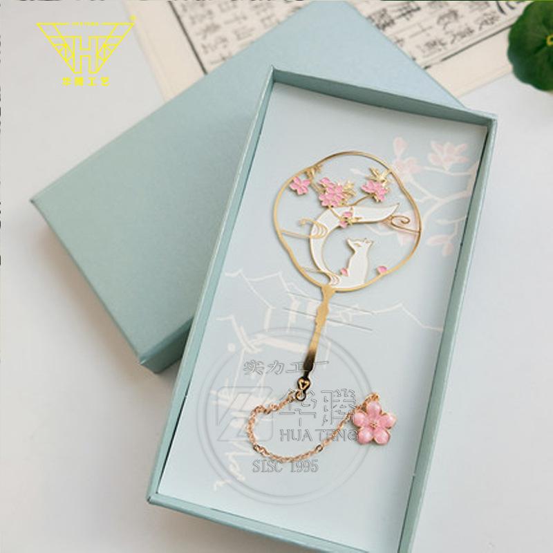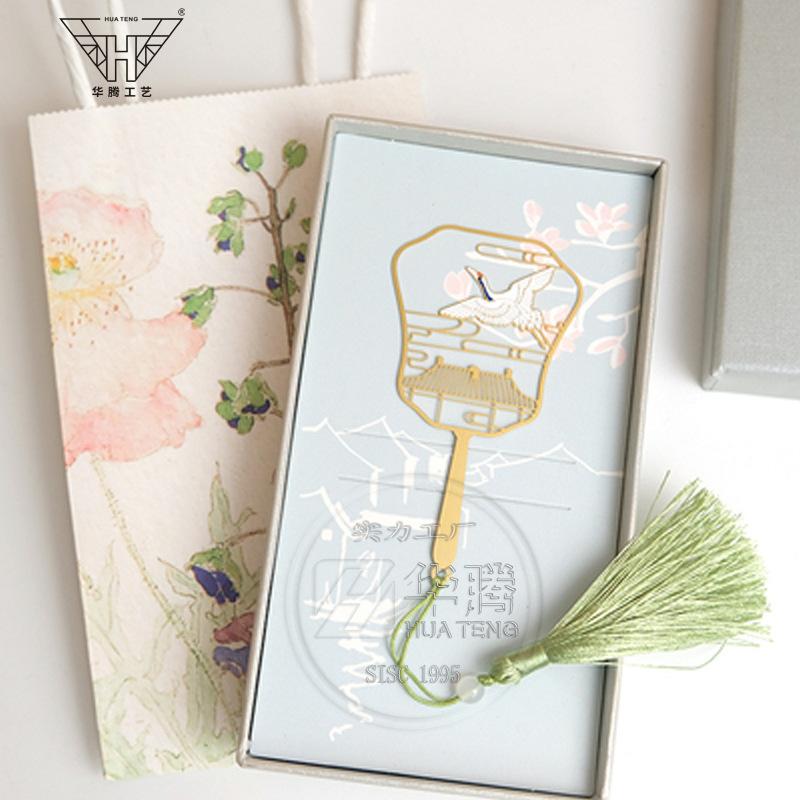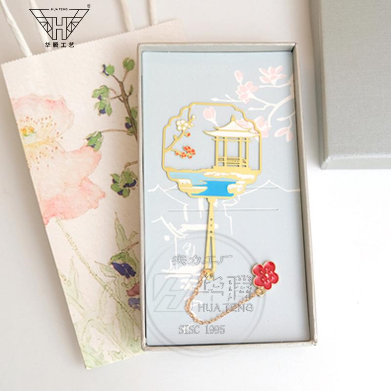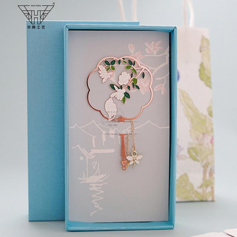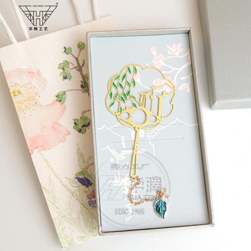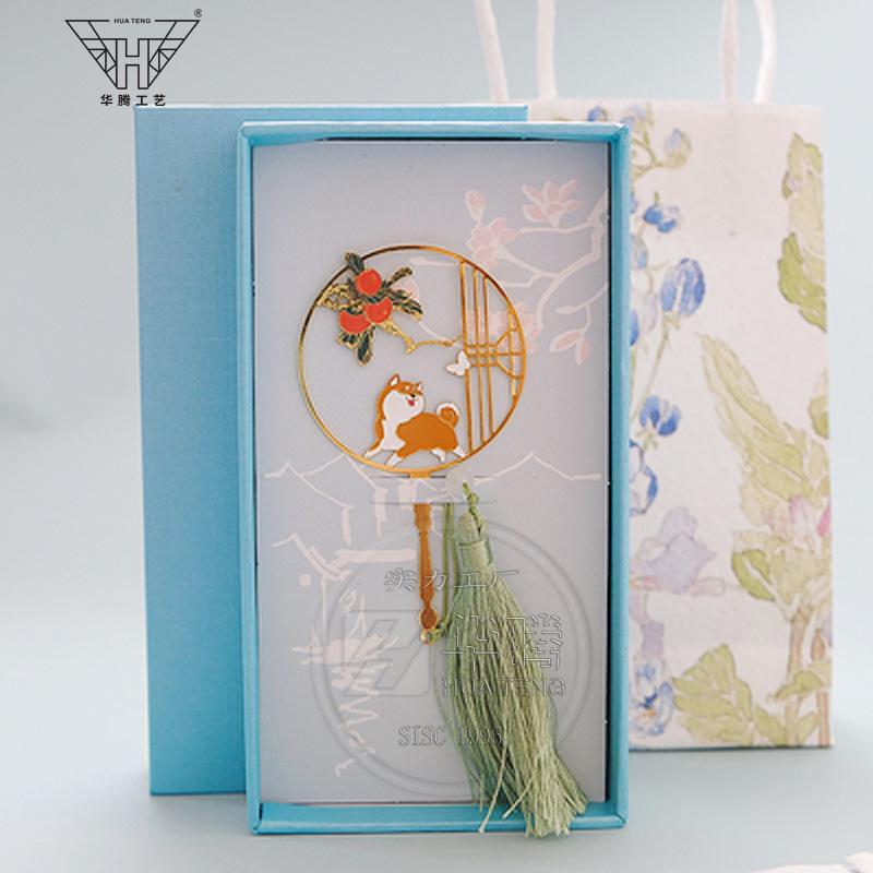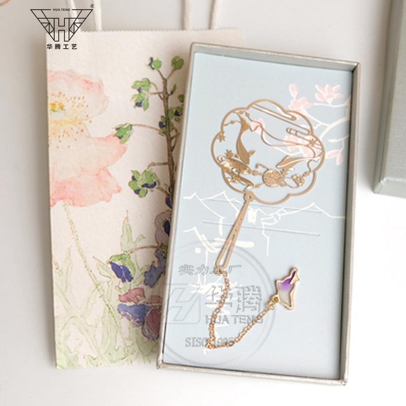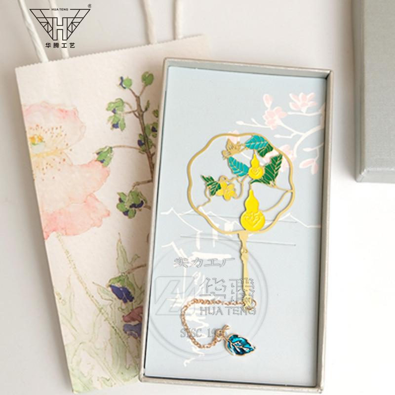 Marcador de metal hueco en forma de abanico de moda caja ciega pintura esmaltada latón regalo estilo chino retro juego de marcadores