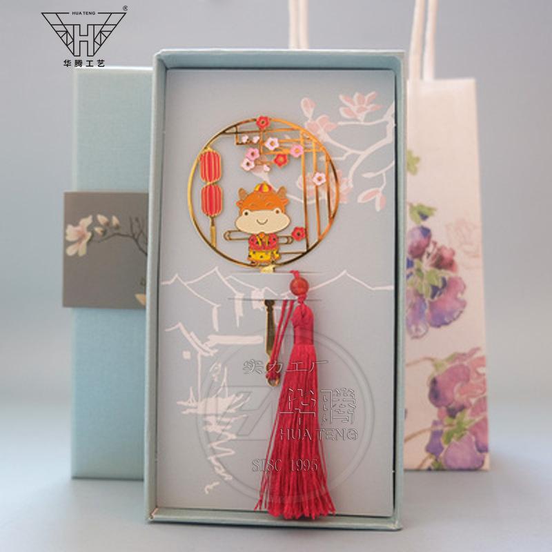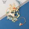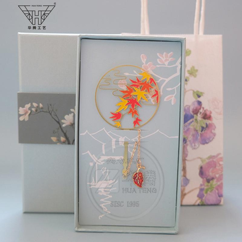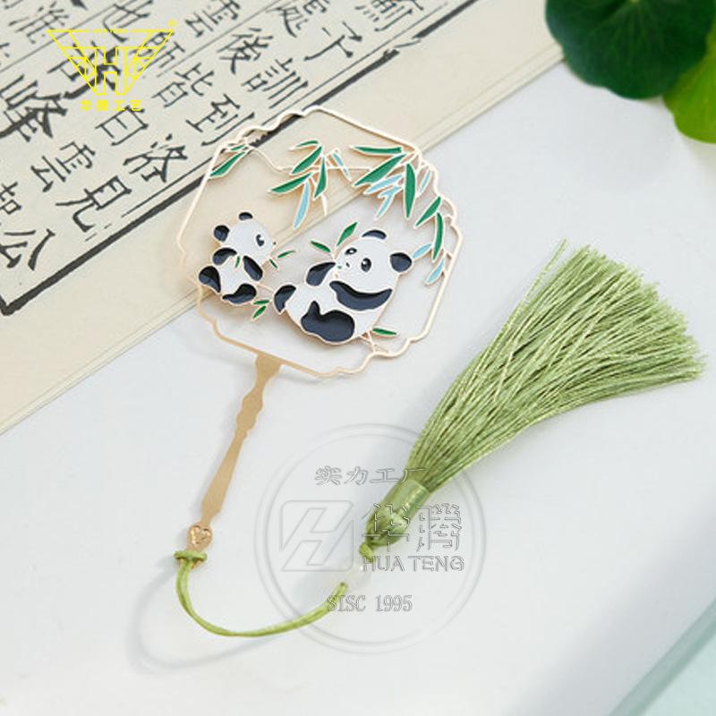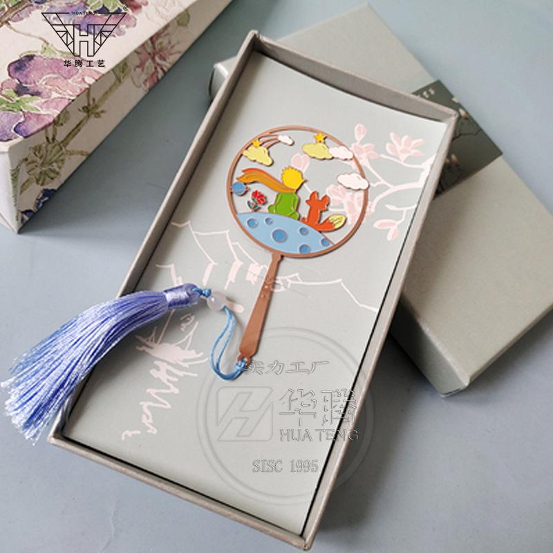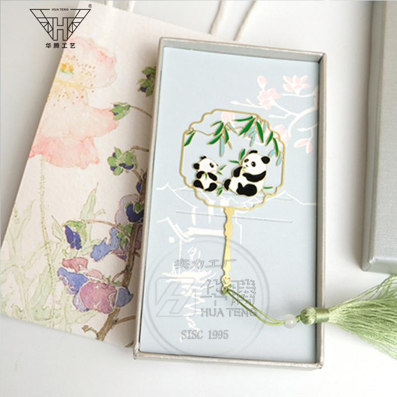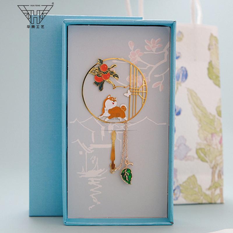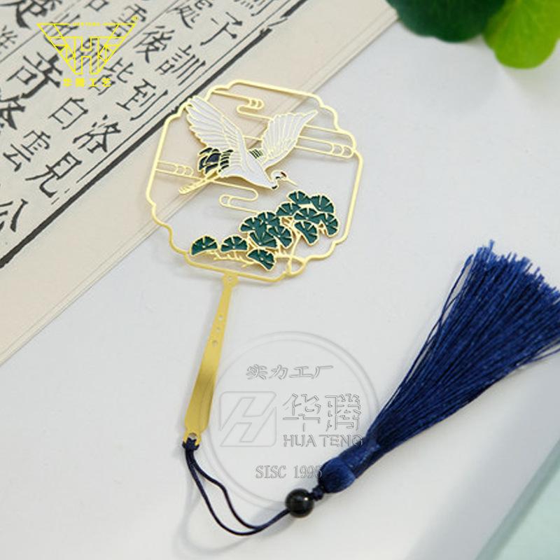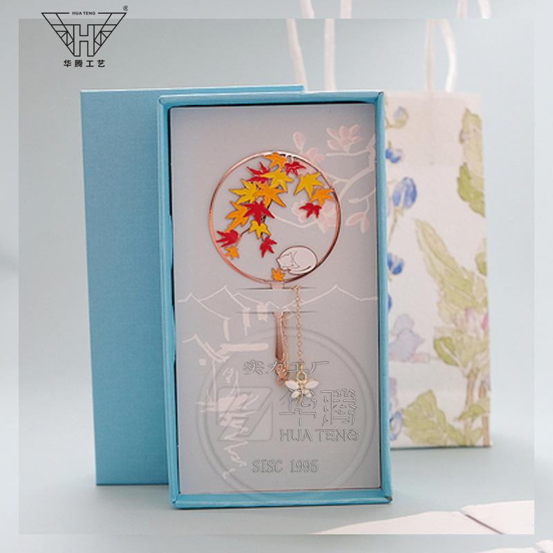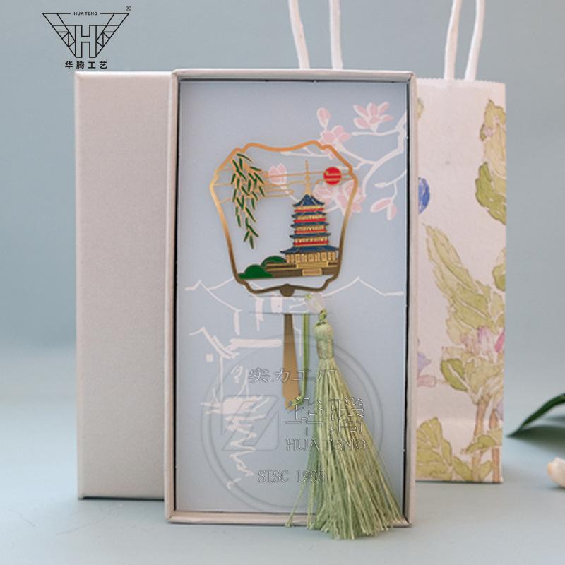 Marcador de metal hueco en forma de abanico de moda caja ciega pintura esmaltada latón regalo estilo chino retro juego de marcadores