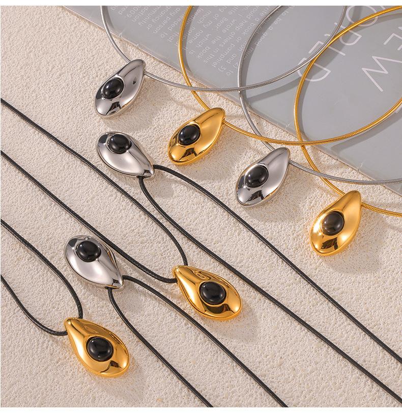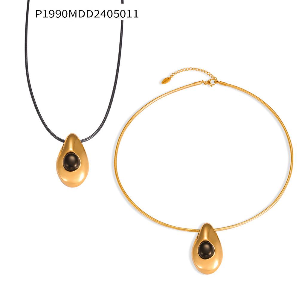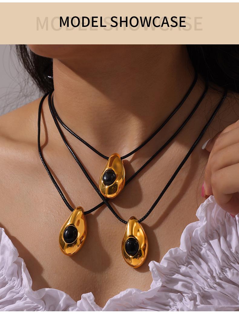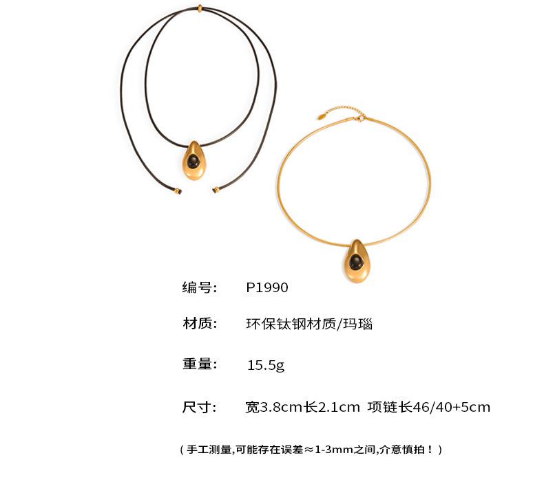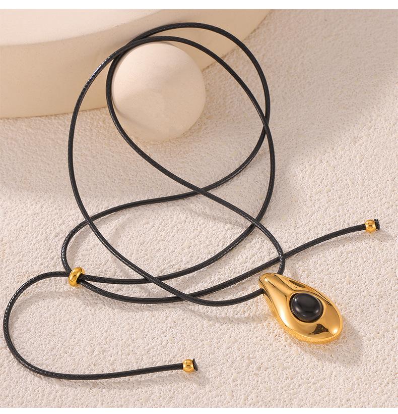 Moda de Celebridad de Internet INS Europea y Americana Popular Acero de Titanio Chapado en Oro de 18k Cuerda de Cuero Juego Gotas de Agua Collar con Colgante de Ágata Joyería Mujer