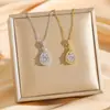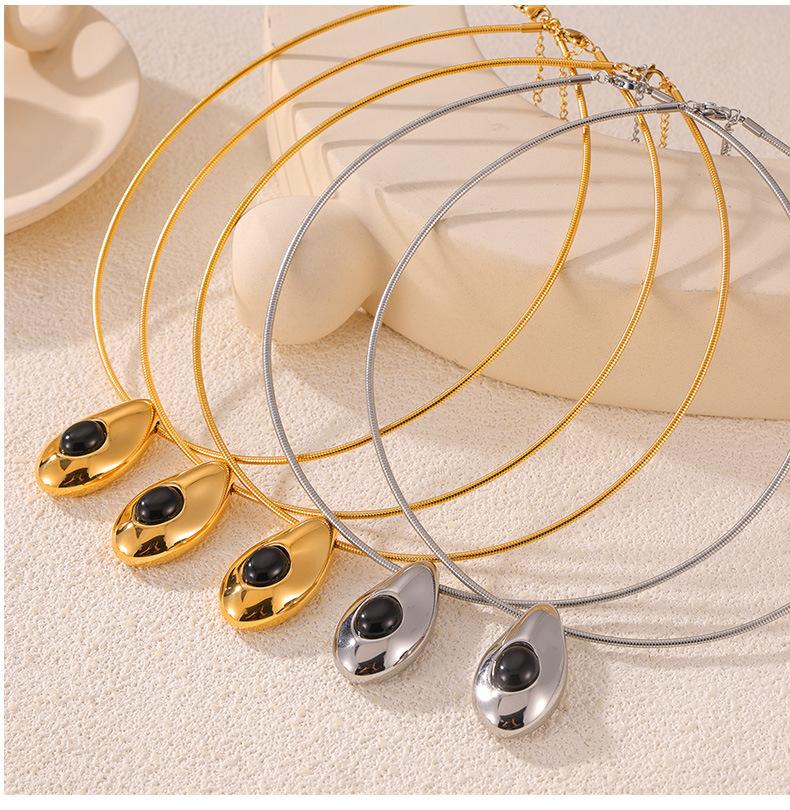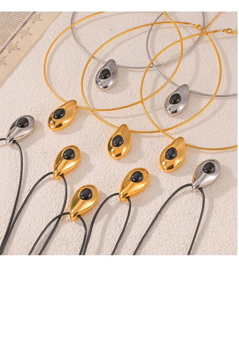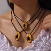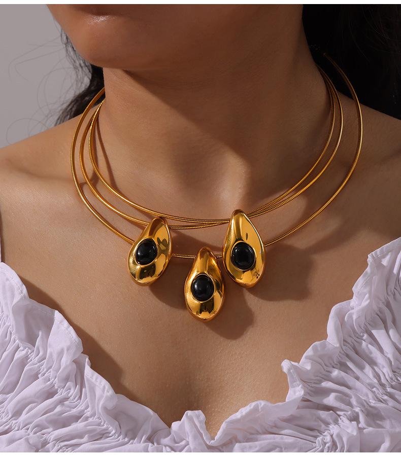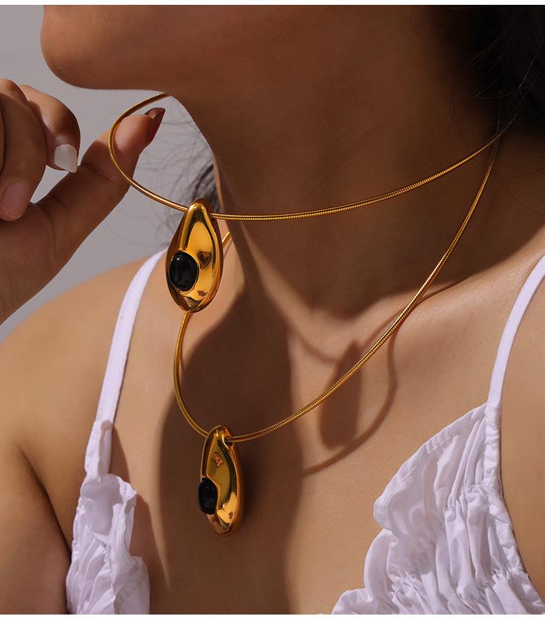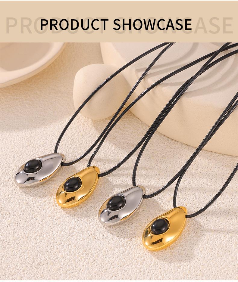 Moda de Celebridad de Internet INS Europea y Americana Popular Acero de Titanio Chapado en Oro de 18k Cuerda de Cuero Juego Gotas de Agua Collar con Colgante de Ágata Joyería Mujer