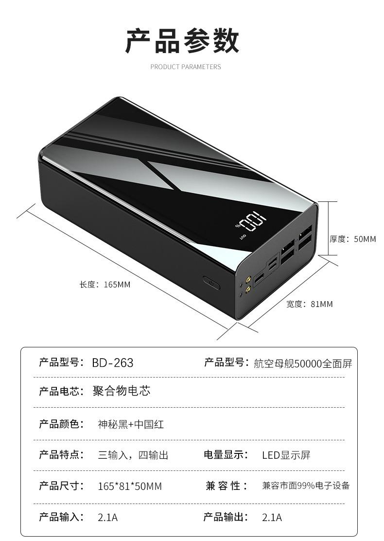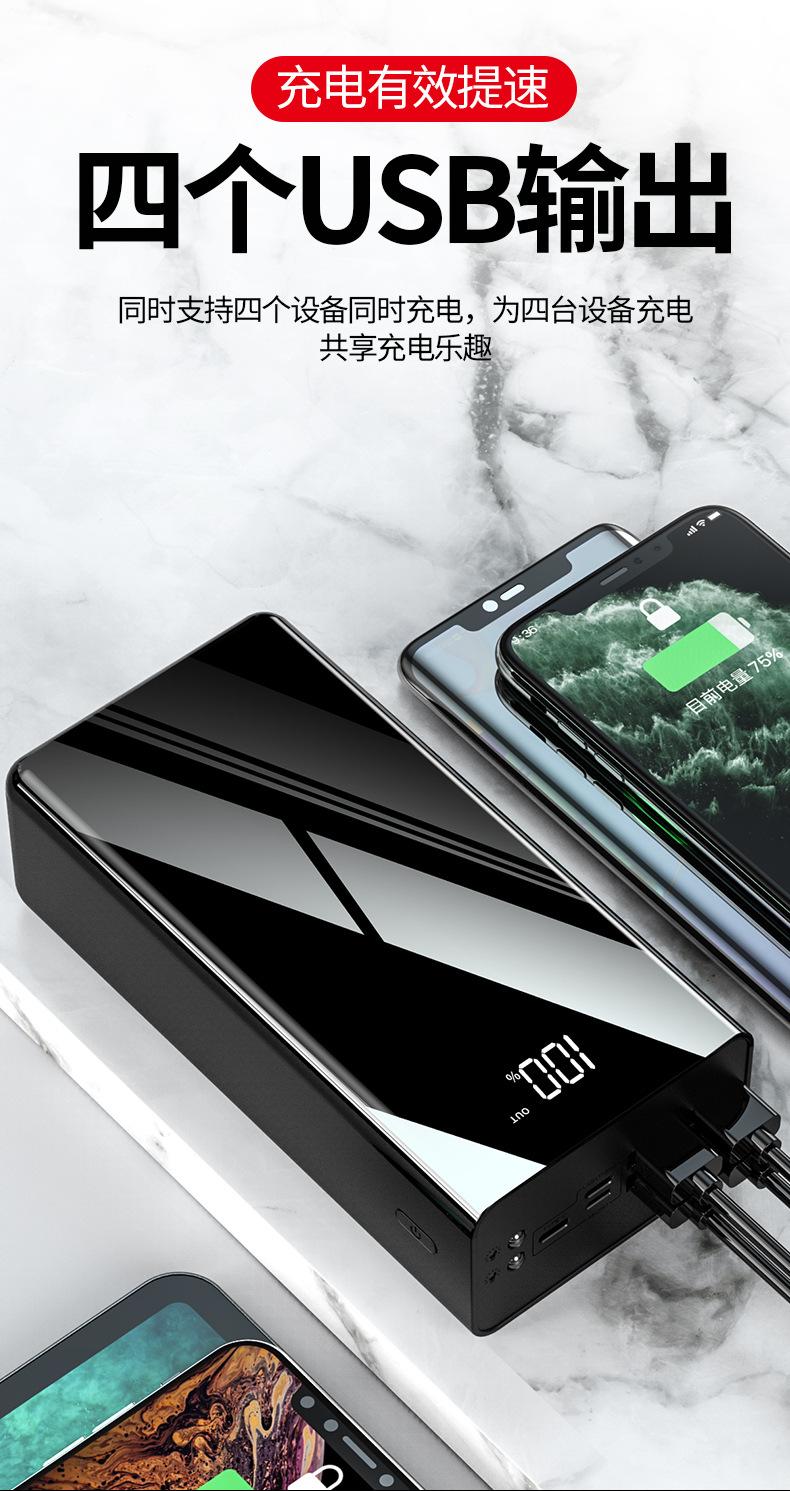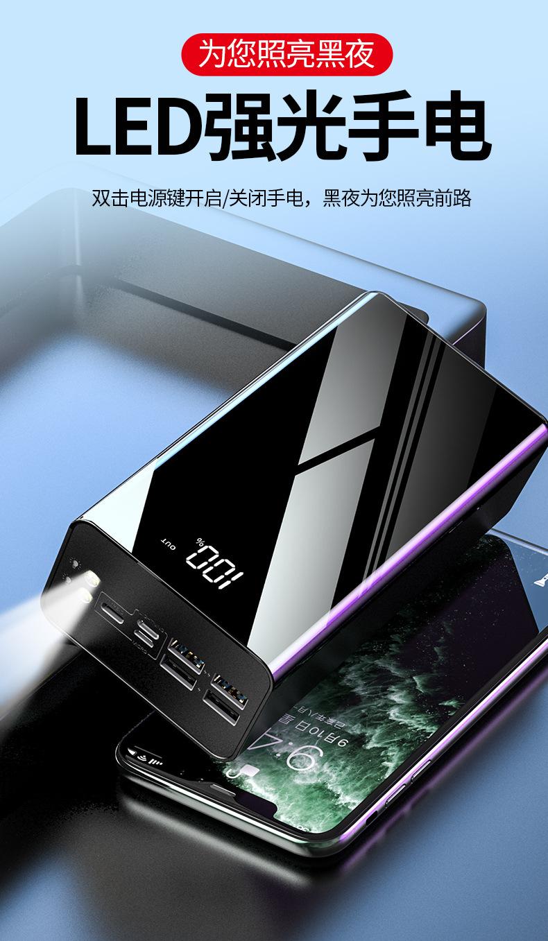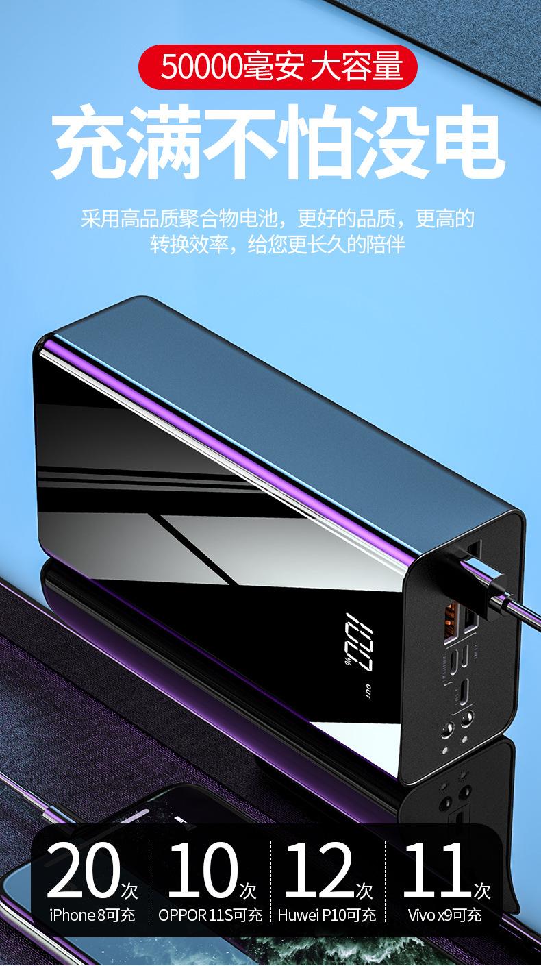 Banco de energía de gran capacidad 3C certificado Kc transfronterizo 50000 mAh Pantalla de espejo Pantalla digital Fuente de alimentación móvil Redacción personalizada
