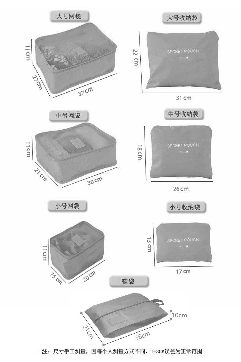 Bolsa de almacenamiento de viaje de estilo coreano, bolsa de acabado de ropa impermeable de siete piezas, bolsa de almacenamiento de viaje, conjunto de 7 piezas