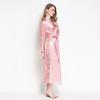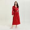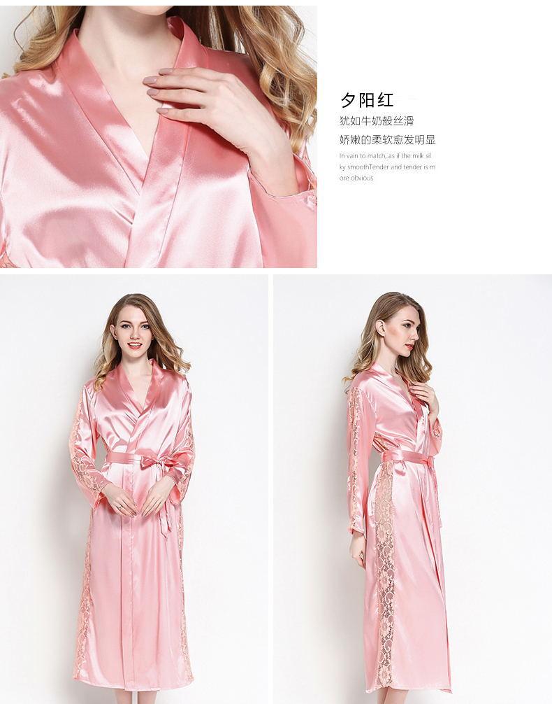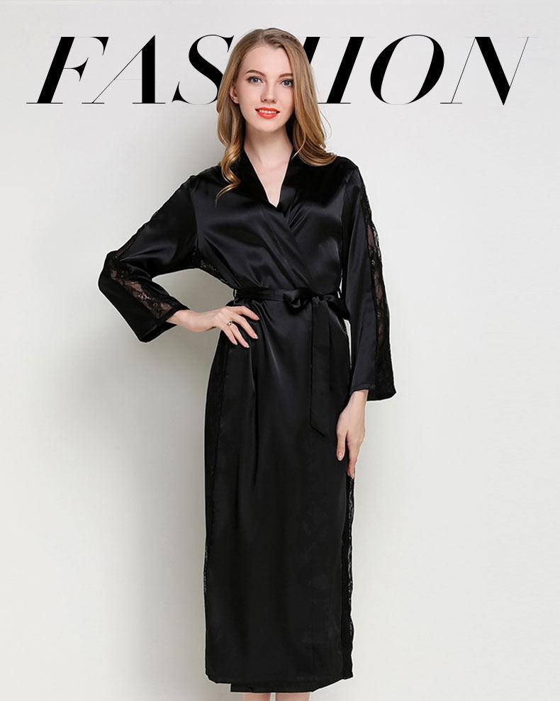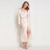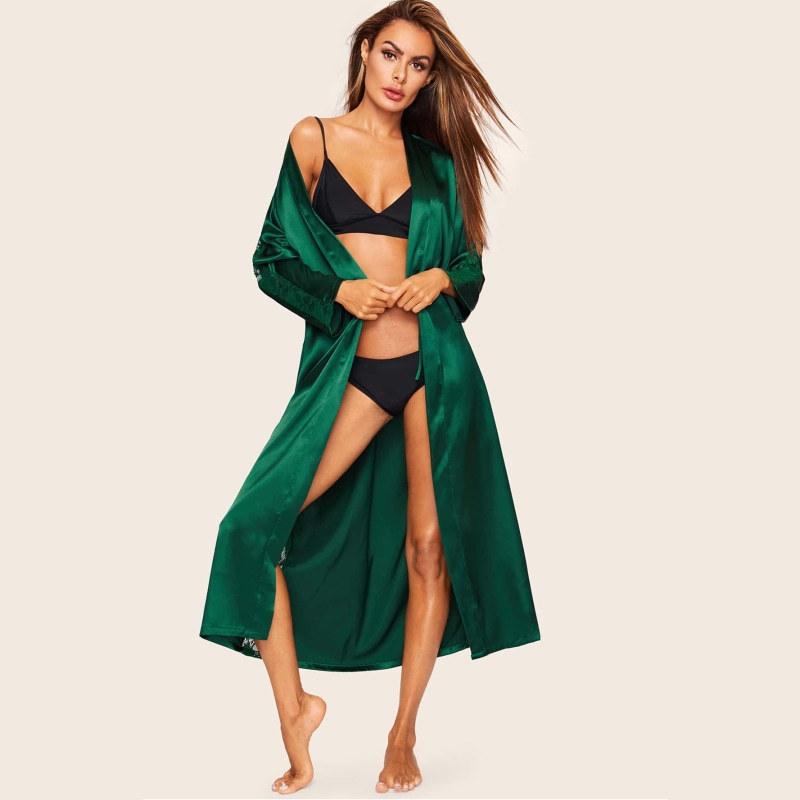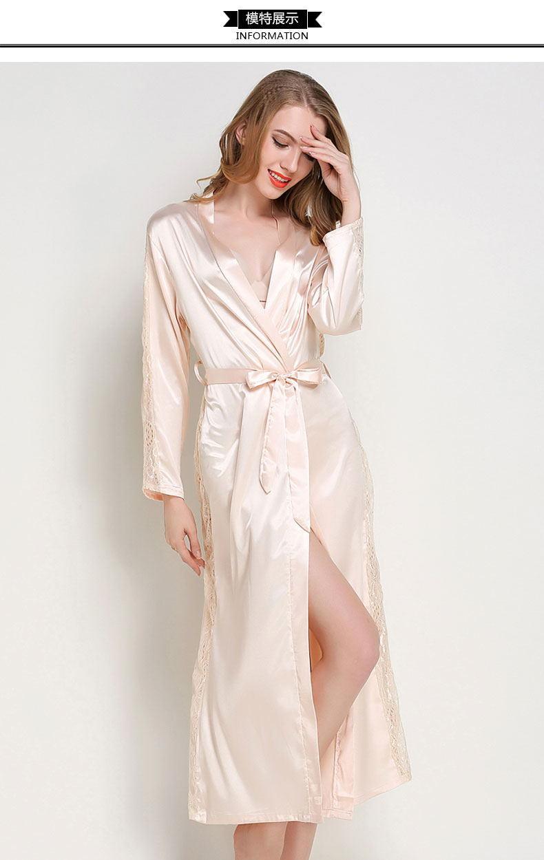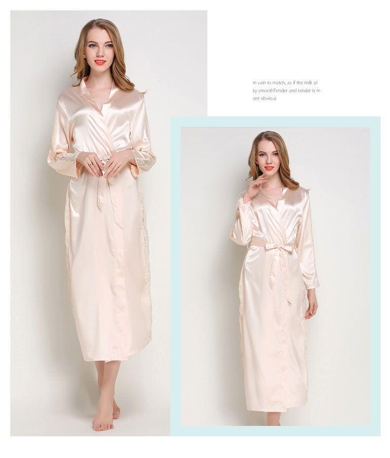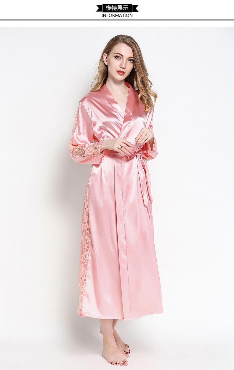Bata de Encaje para Mujer Delgada de Manga Larga Sexy Bata de Vestir Imitación Seda Color Puro Extralarga Camisón Primavera y Verano