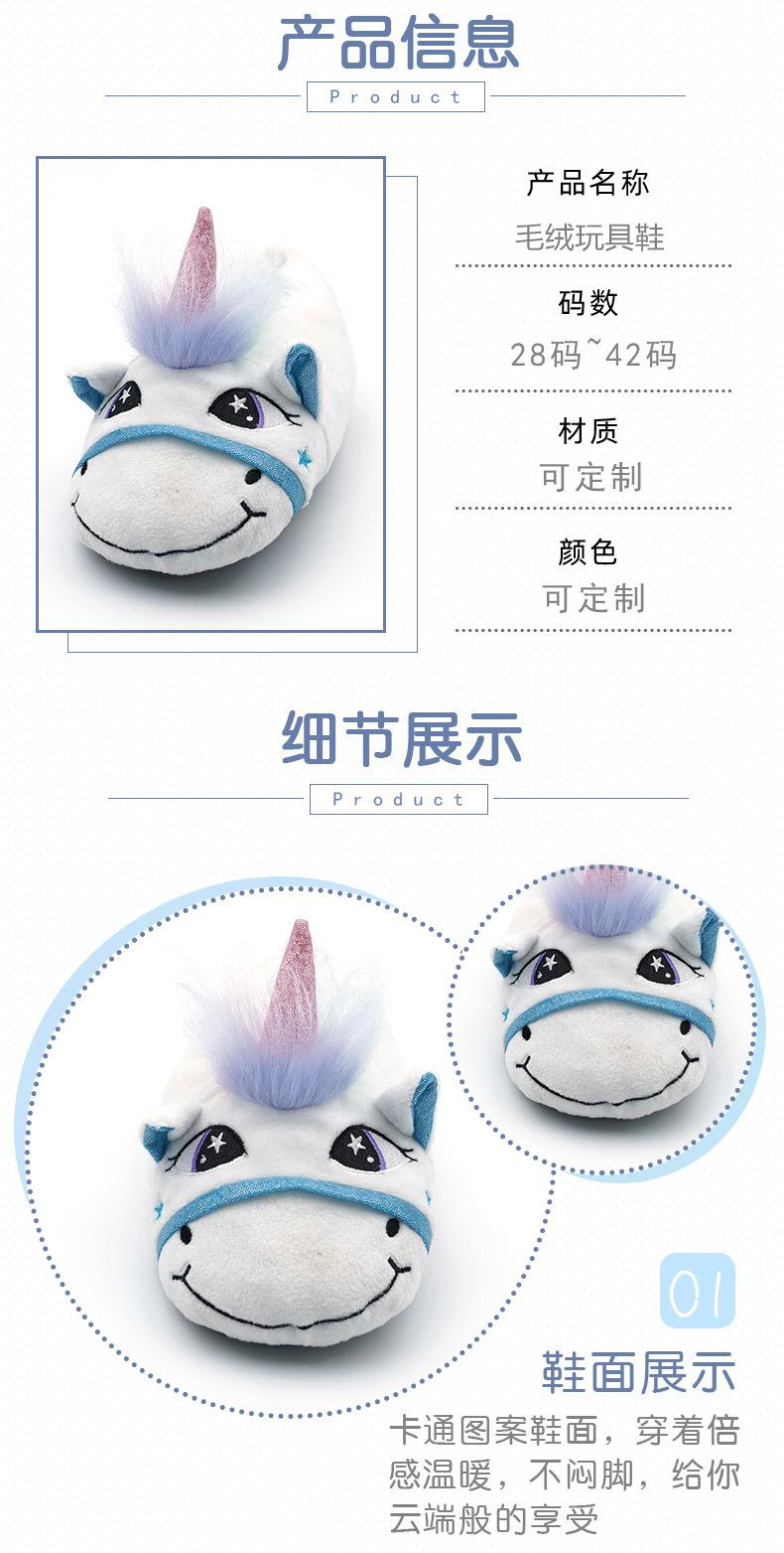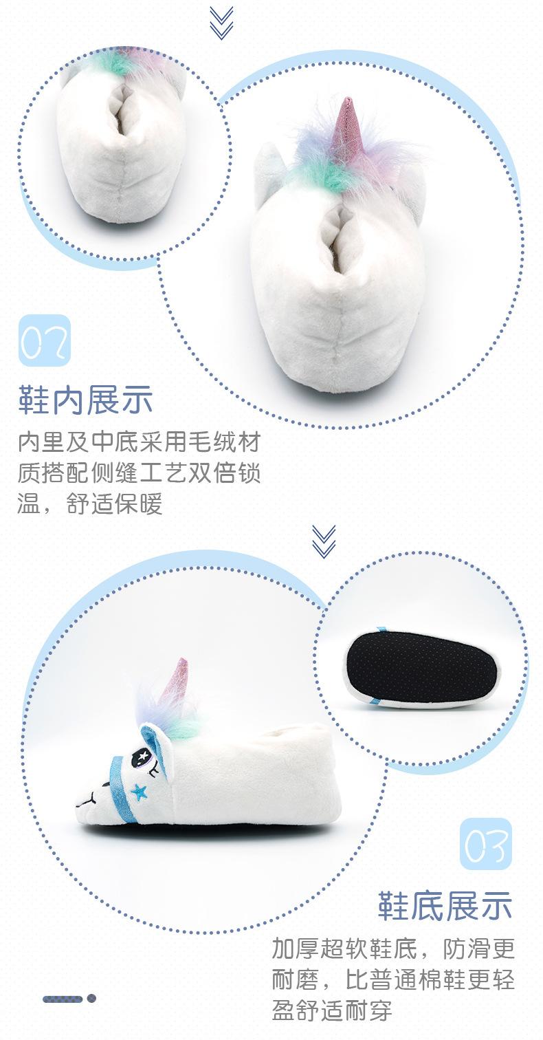 Pantuflas de algodón de felpa para el hogar, venta al por mayor, con dibujos de unicornios y animales, cálidas para el hogar.