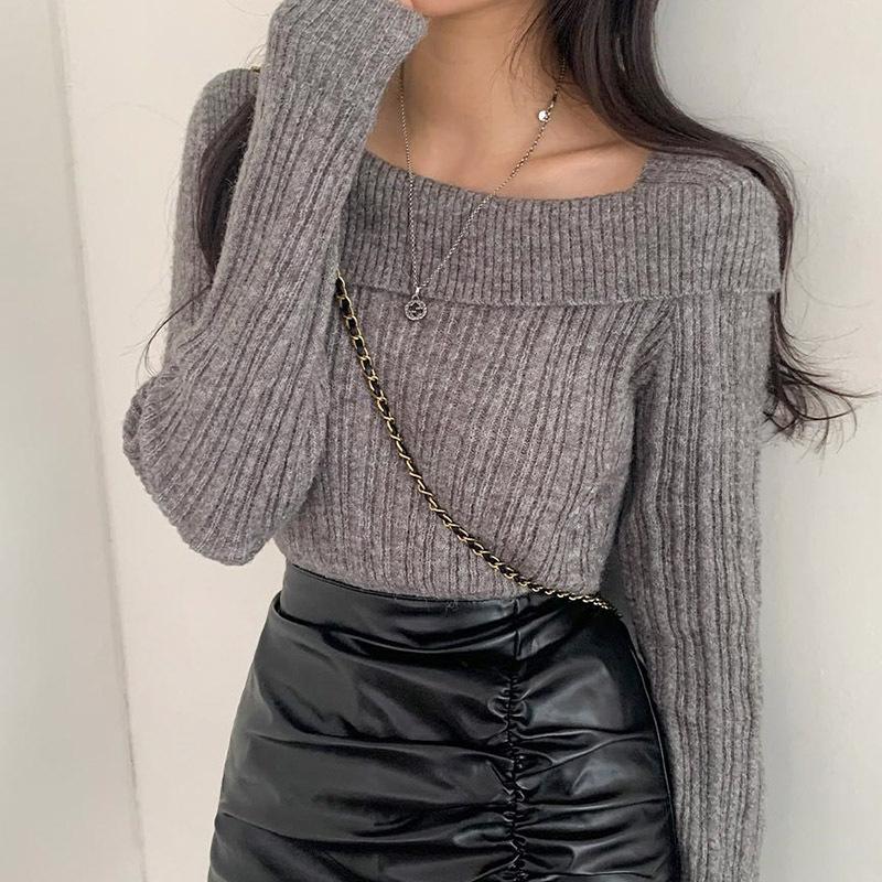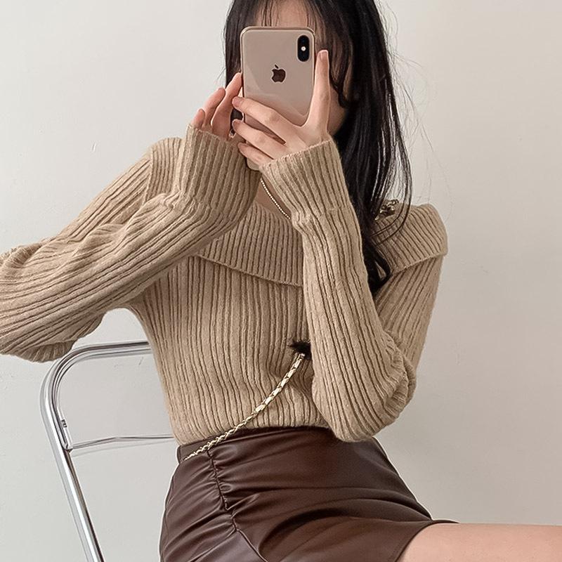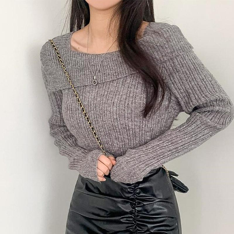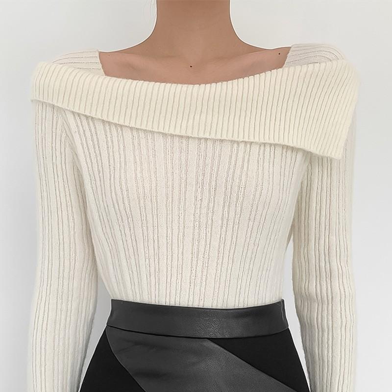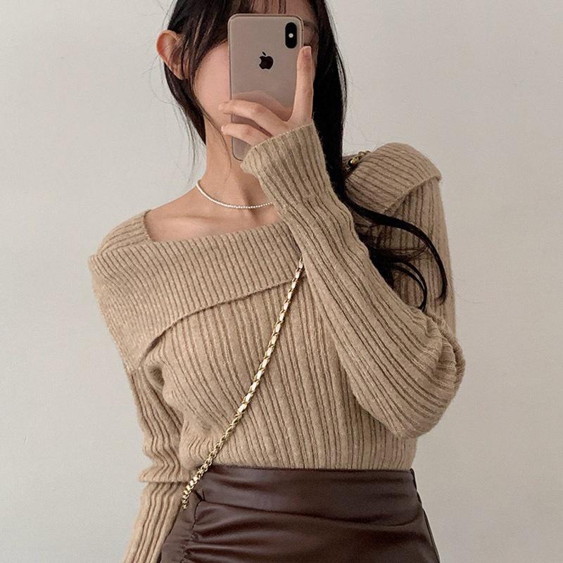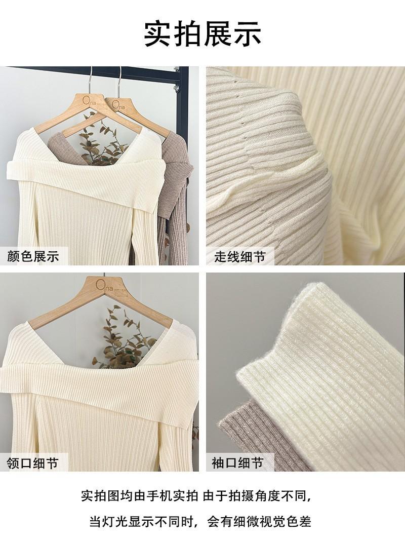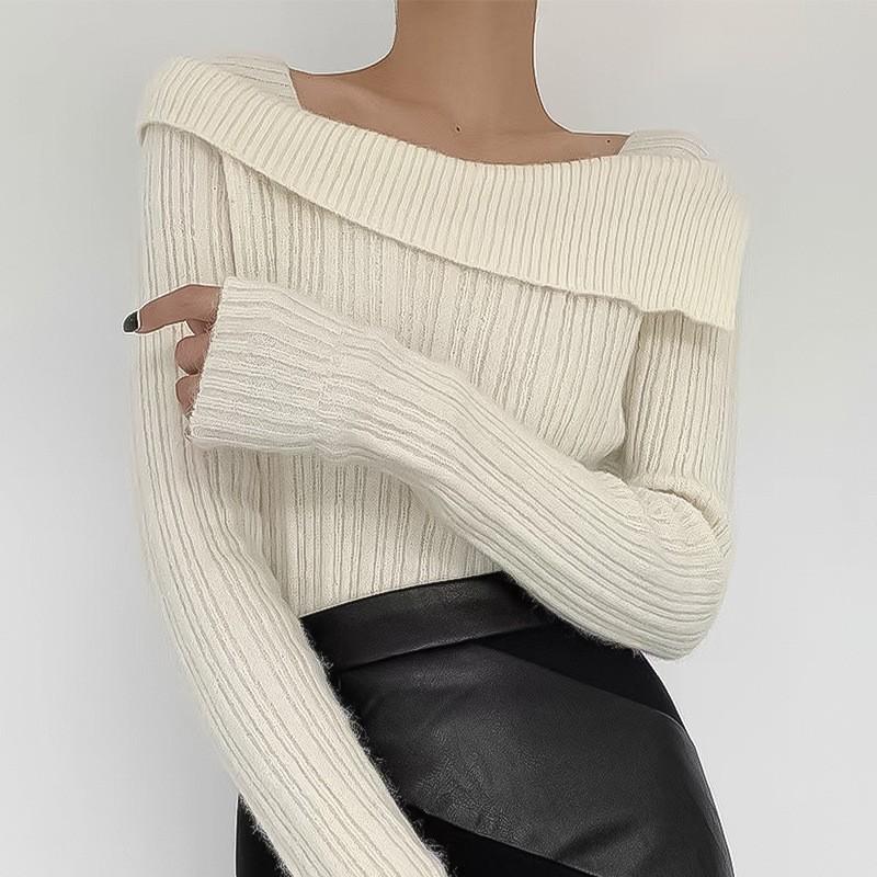 Calidad Otoño 2023 Estilo Deseo Puro Ropa Privada Suéter Delgado de Poliéster de Cuello Único para Mujer Celebridad