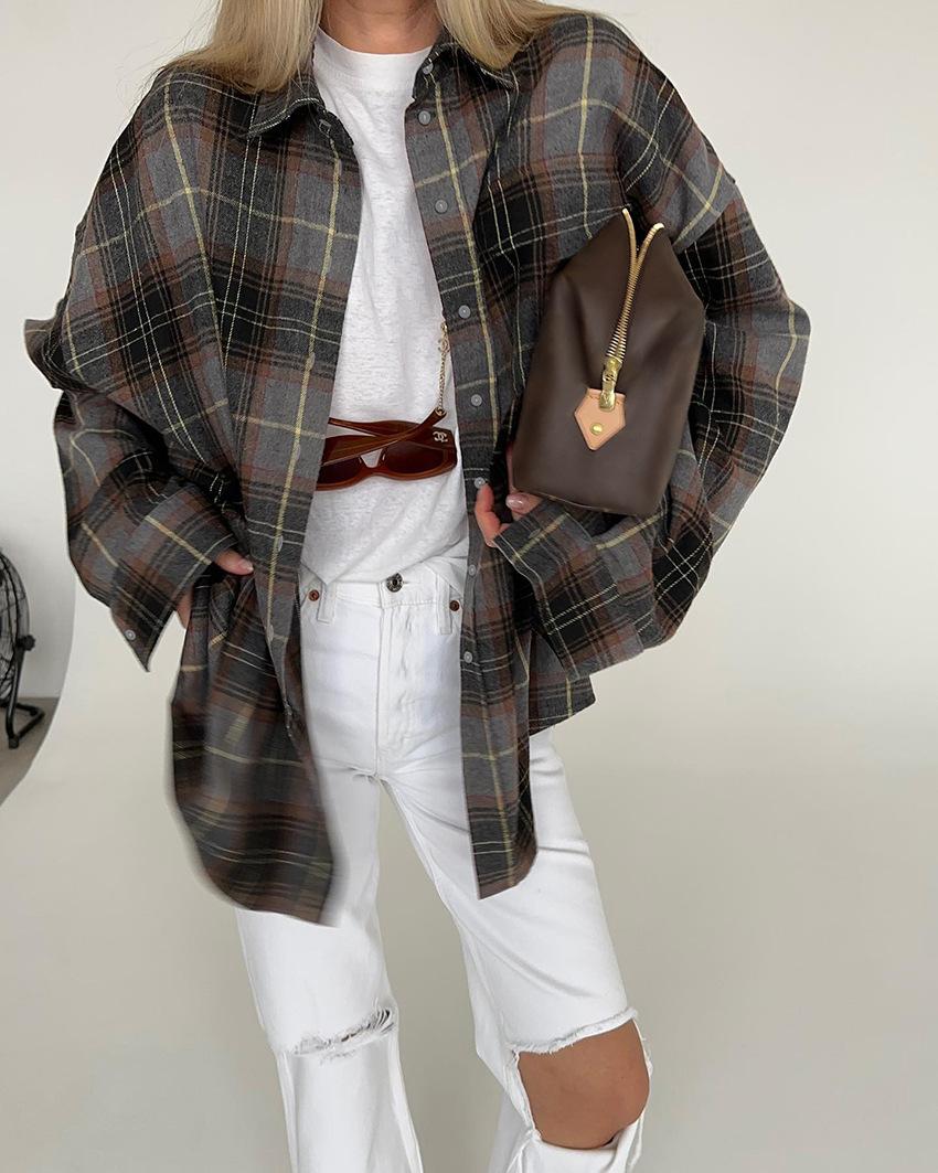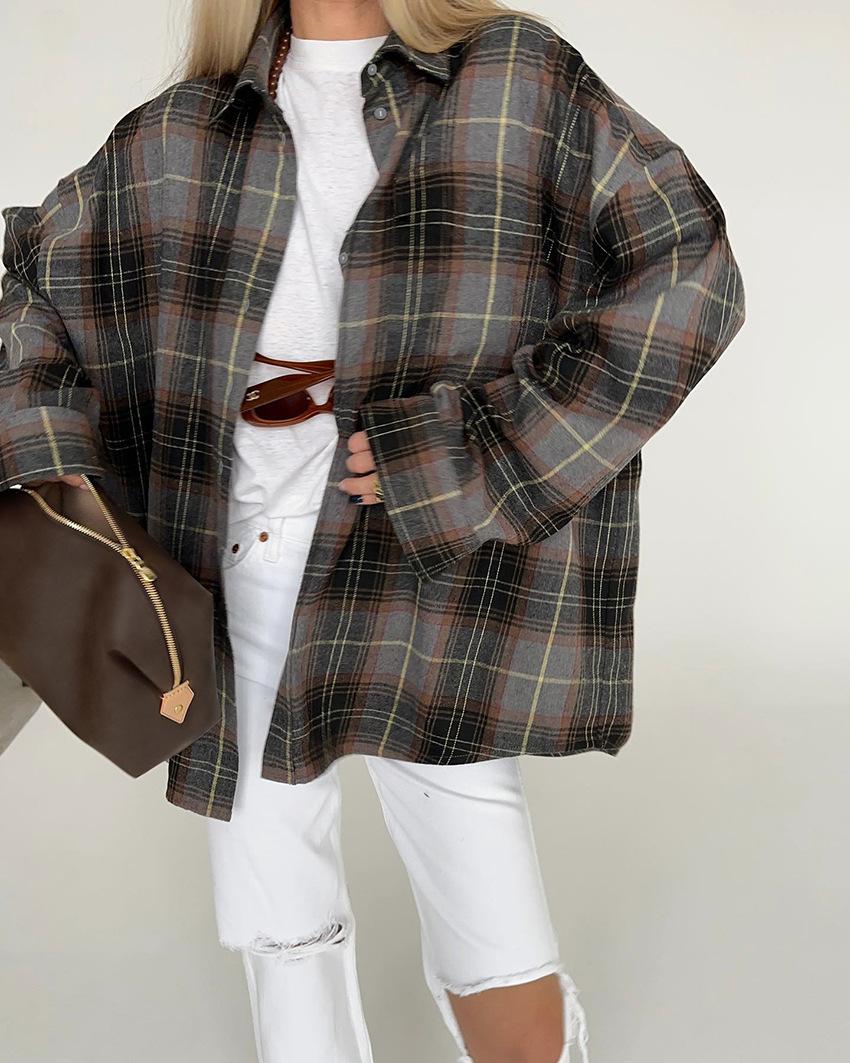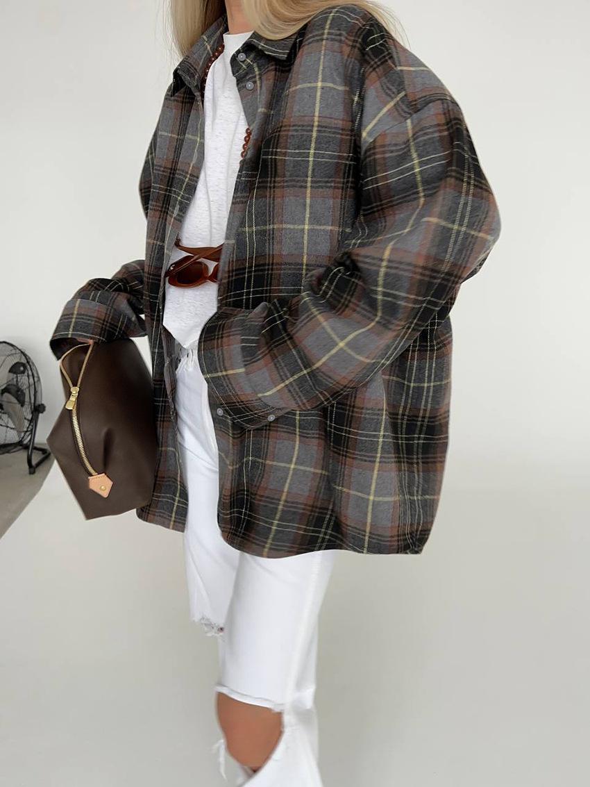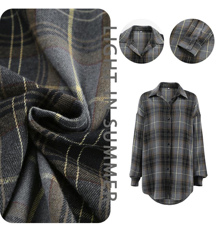 Camisa de Manga Larga a Cuadros de Verano 2025, Moda Retro Suelta Casual Elegante, Chaqueta a Cuadros Versátil Europea y Americana