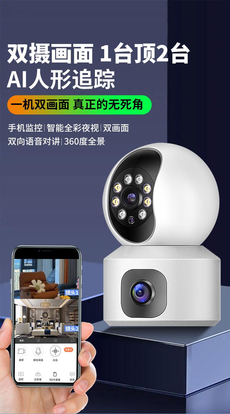 Cámara de vigilancia binocular panorámica de doble pantalla sin ángulo muerto cámara de red con enlace de bola de pistola inteligente visión nocturna HD