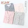 Camisón de Verano para Mujer Nuevo Largo Medio Sencillo a Cuadros Estilo Japonés Camisón Fresco Cómodo Transpirable Ropa para el Hogar