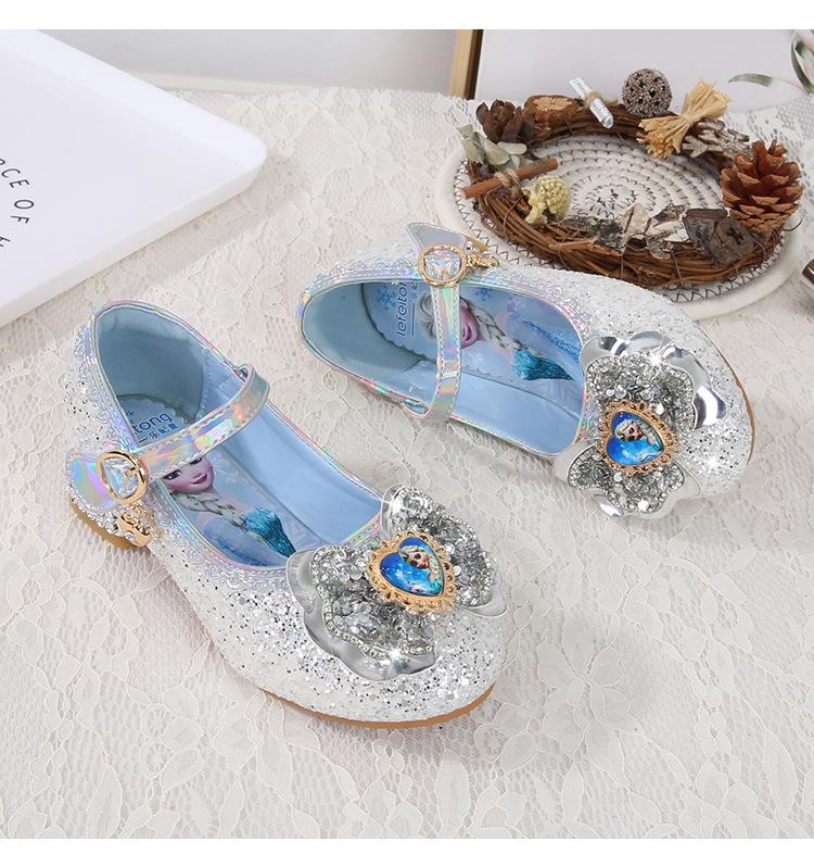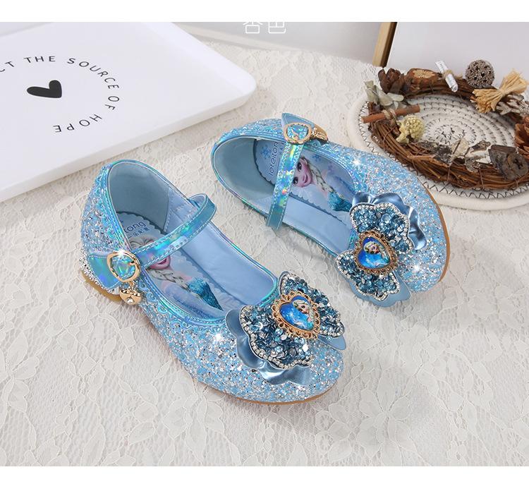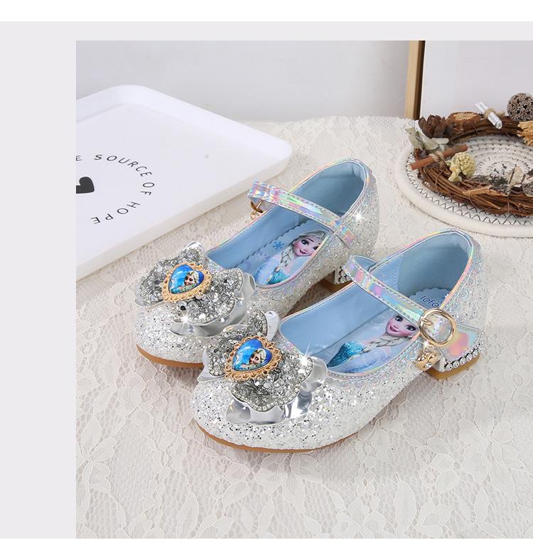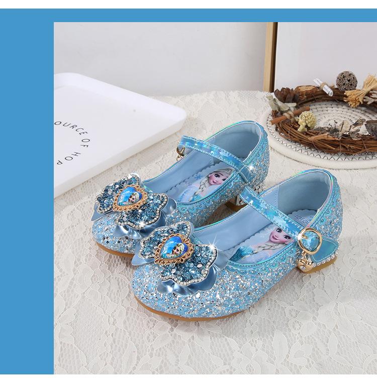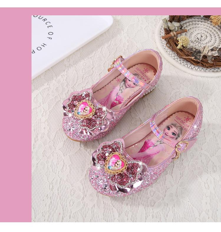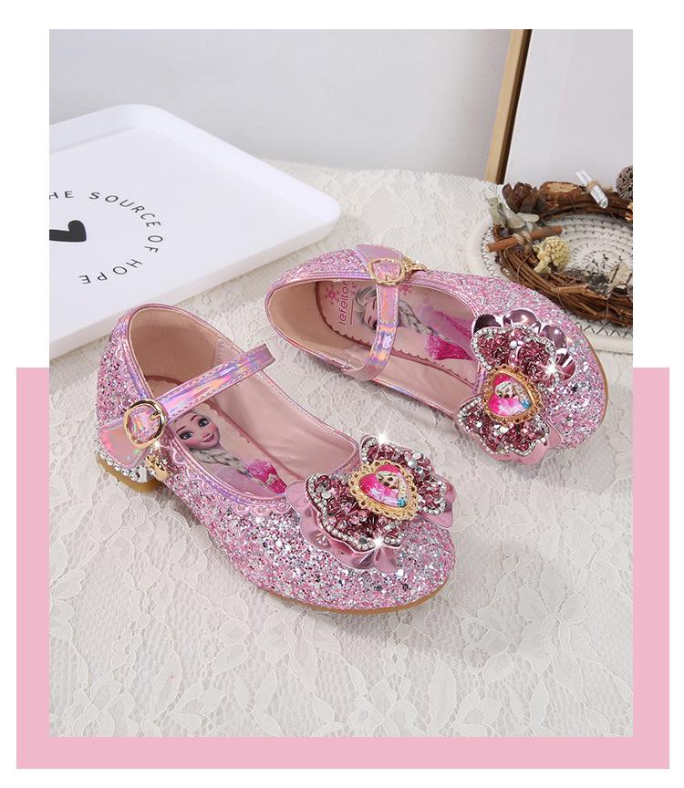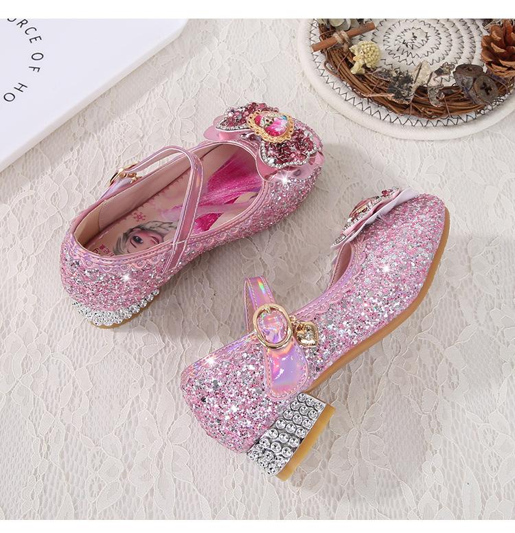 Zapatos de princesa para niñas, moda primavera y otoño, nuevos zapatos de tacón alto para niñas, zapatos de princesa Aisha, zapatos de cuero con suela suave, zapatos individuales de cristal.