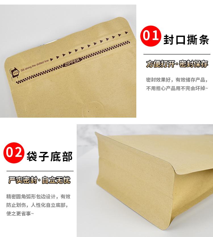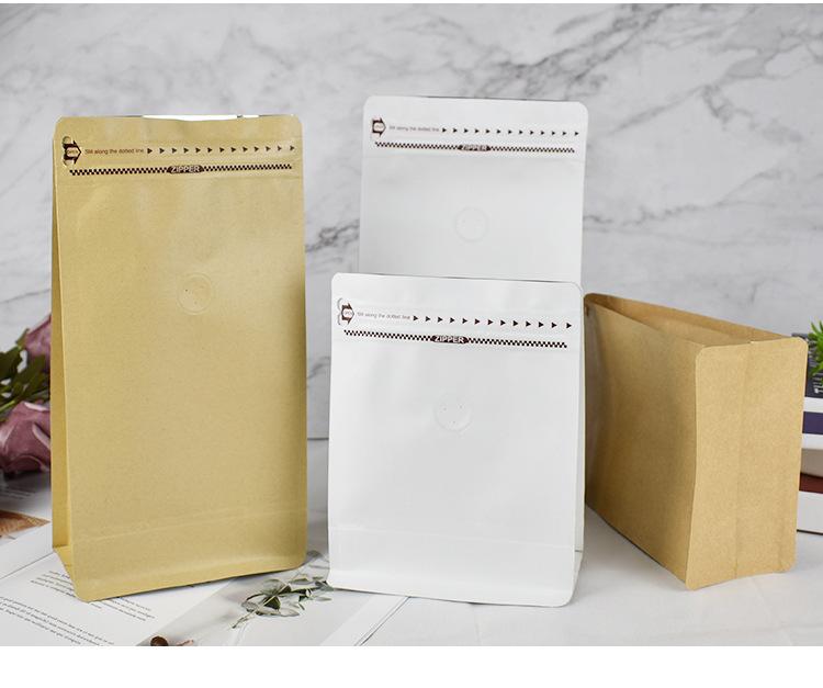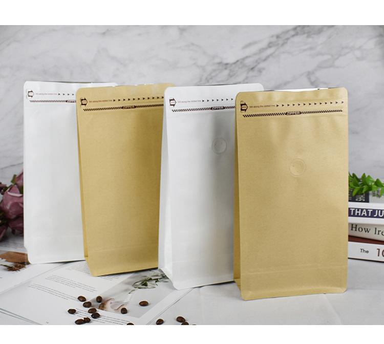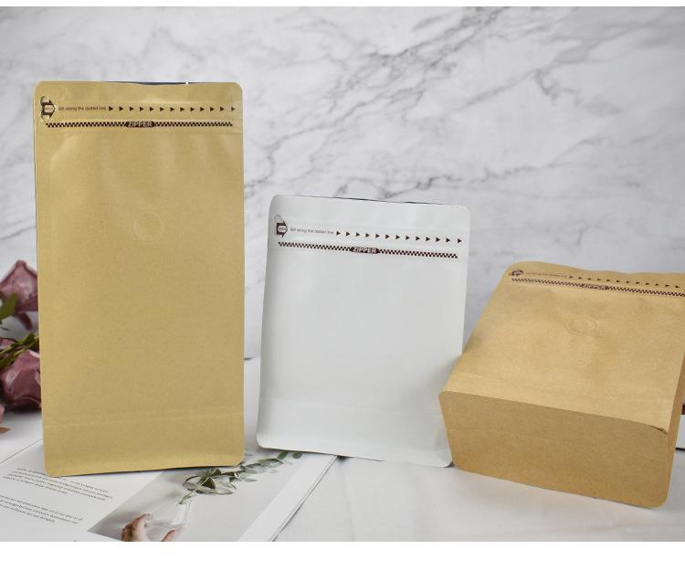 Bolsa de Sellado de Ocho Lados de Papel Kraft Amarillo Bolsa de Café Bolsa de Embalaje con Cierre Fácil de Abrir Bolsa de Sellado a Prueba de Humedad para Té Grano de Café
