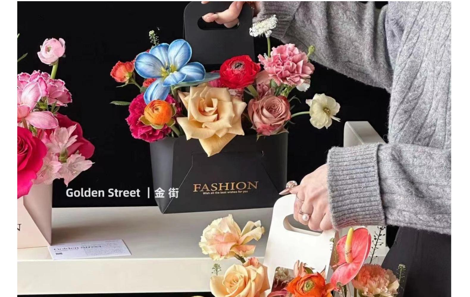 Caja Plegable de Flores Día del Maestro Empaque de Flores Venta al por Mayor Bolsa de Regalo de Flores Caja de Flores de Mano