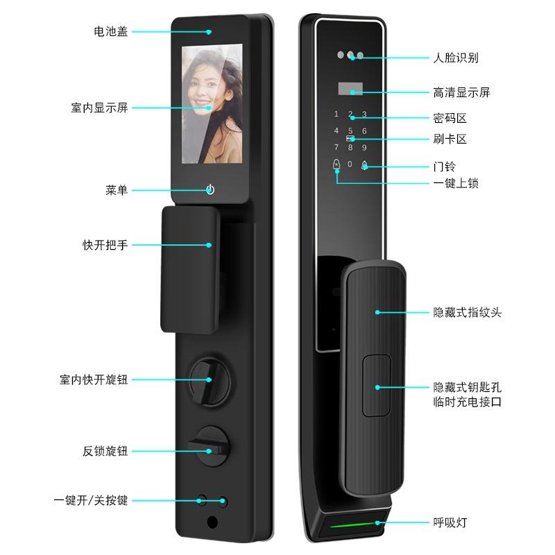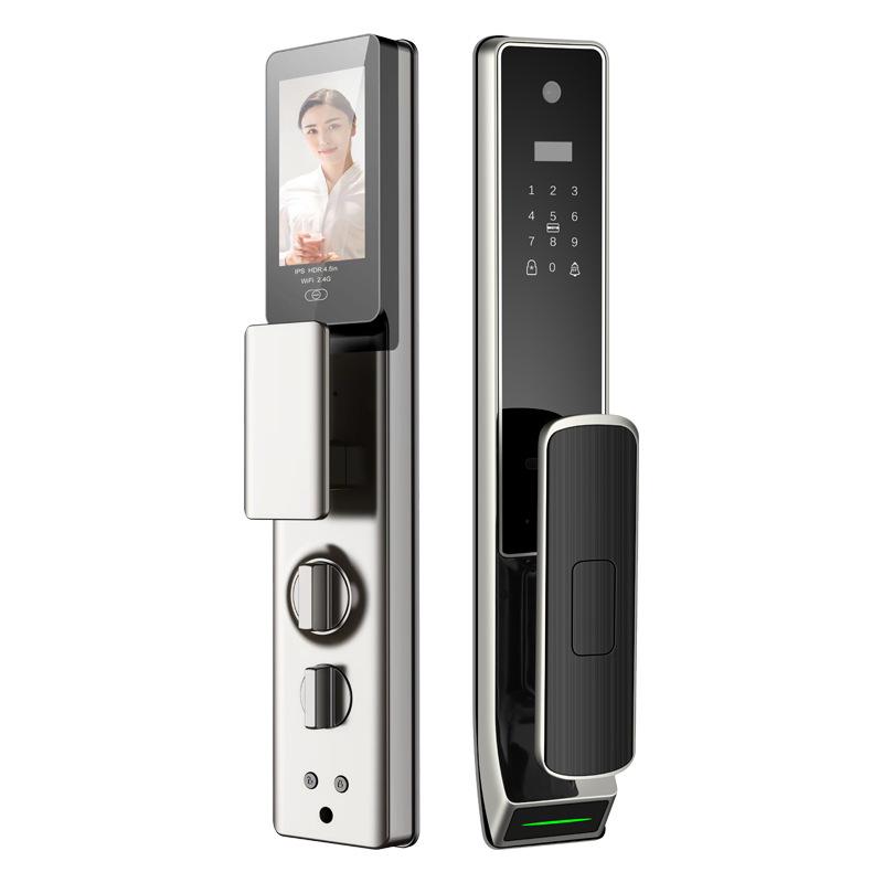 Cerradura de puerta inteligente con grafiti, red, reconocimiento facial, huella dactilar, bloqueo con contraseña, transmisión de imágenes, casa inteligente para toda la casa, puerta inteligente