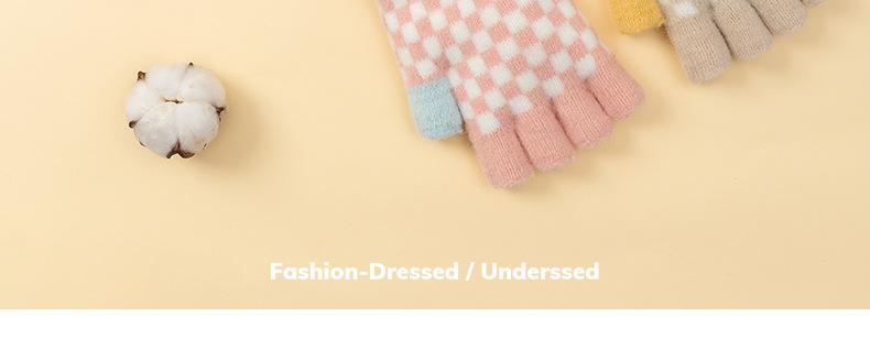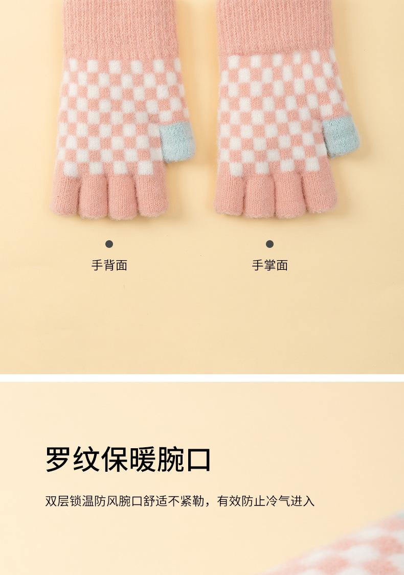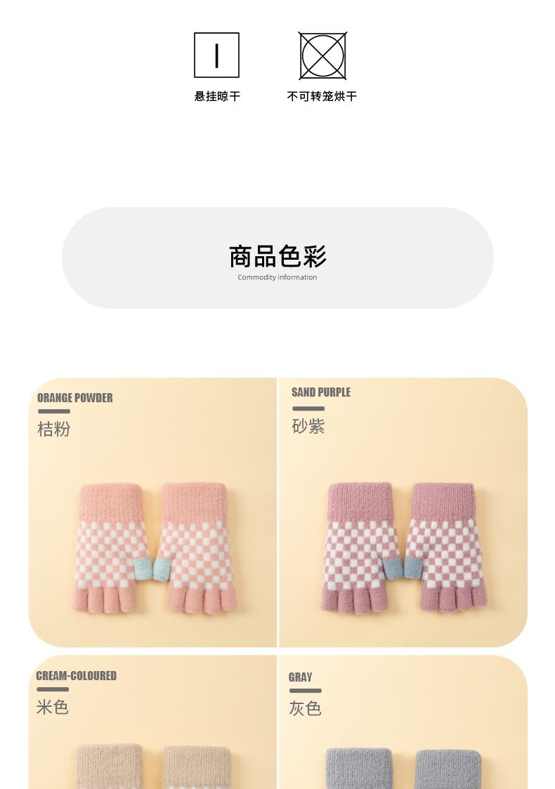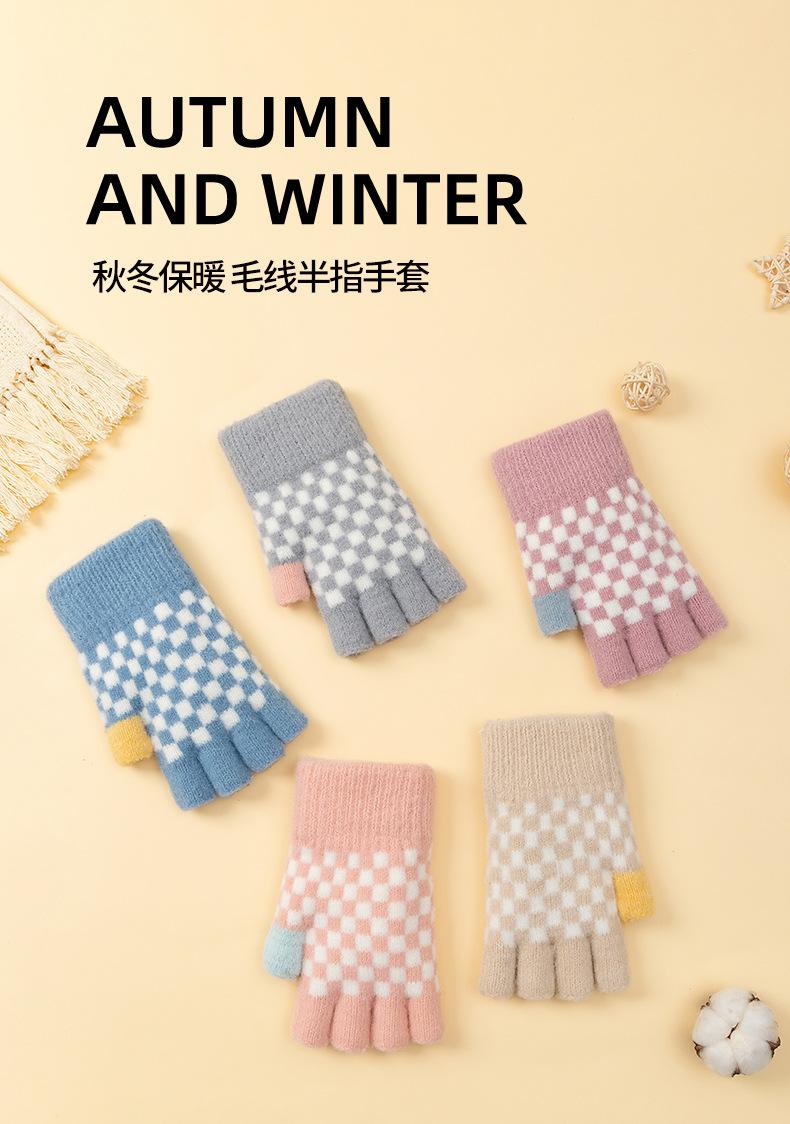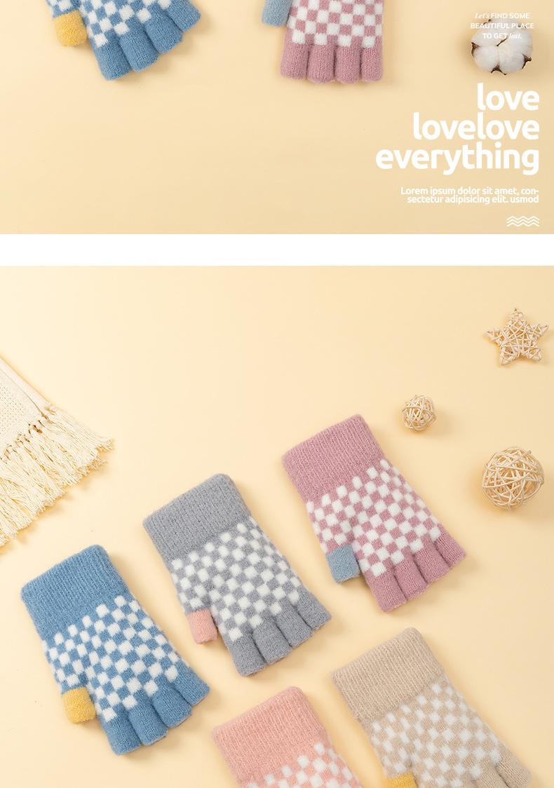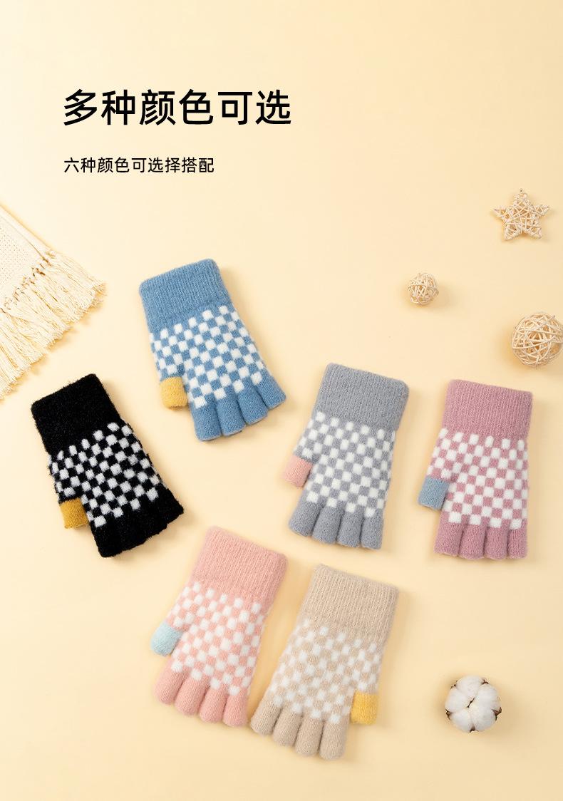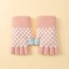 Guantes de Invierno para Mujer, Cálidos de Medio Dedo para Ciclismo con Forro Polar, Cálidos de Lana Tricotada a Cuadros para Estudiante a Prueba de Frío para Escribir