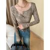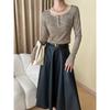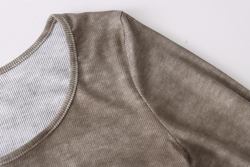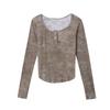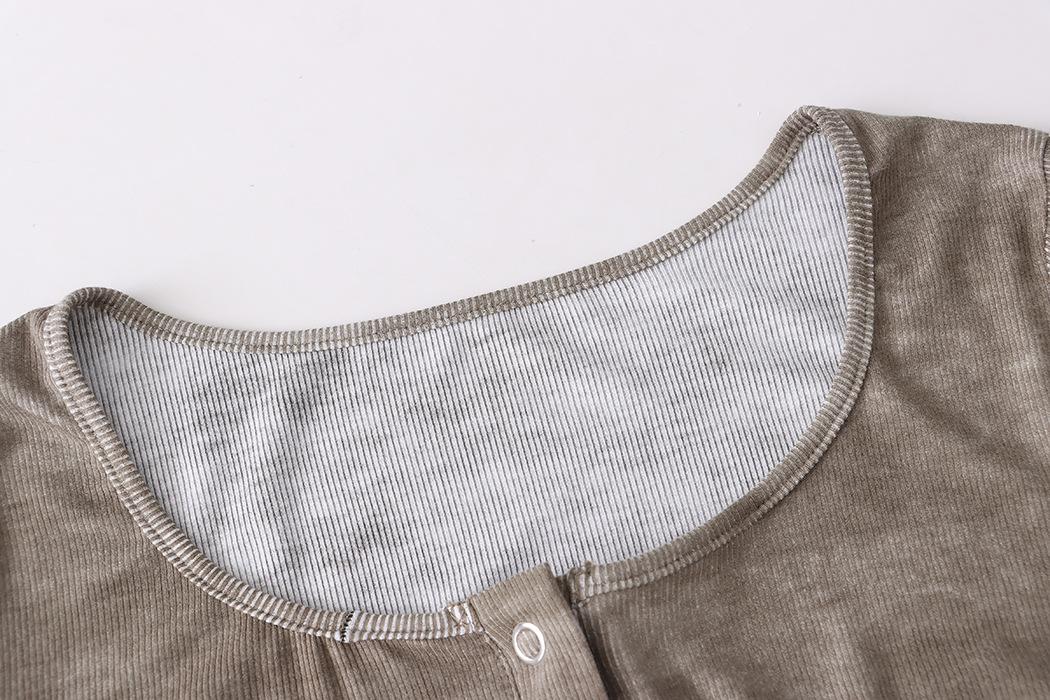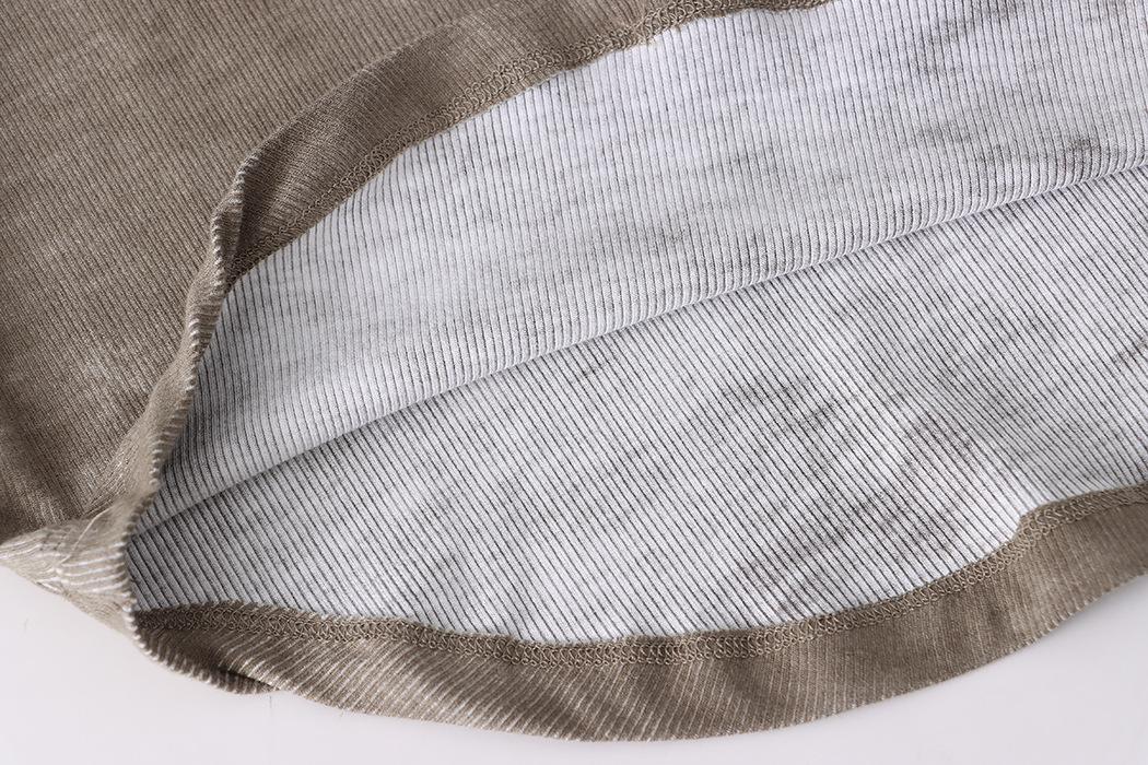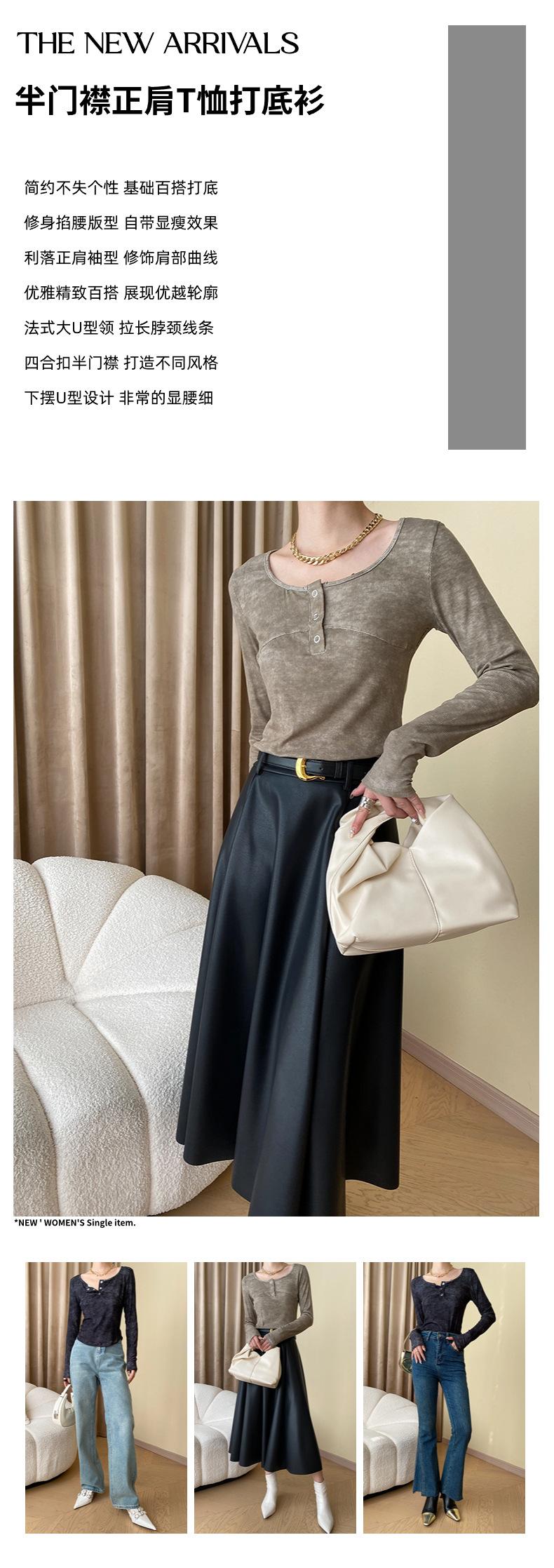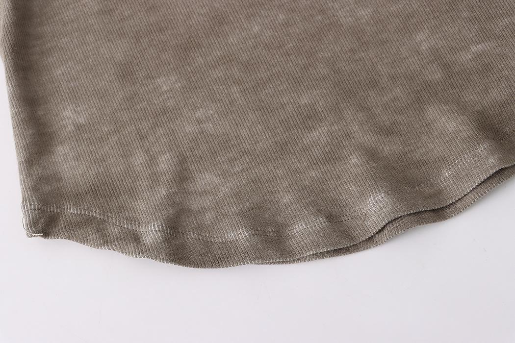 Sinan Estilo Wasteland Desgastado Entallada Dobladillo Arco Casual Hombro Derecho Cuello Henry Camiseta Base Sn4656