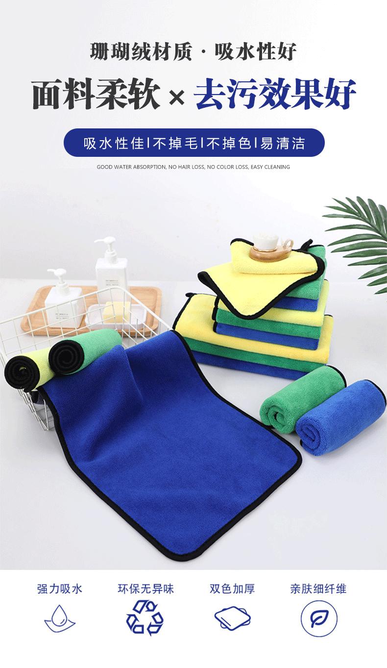 Toalla de Microfibra de Coral Compuesta para Coche 800Gsm Espesada Absorbente de Agua Paño de Secado Rápido Toalla de Limpieza de Cocina Toalla para Lavado de Coche Toalla Publicitaria