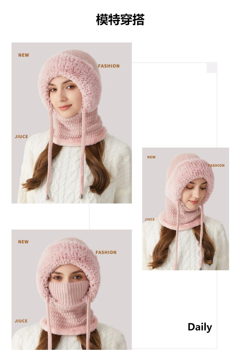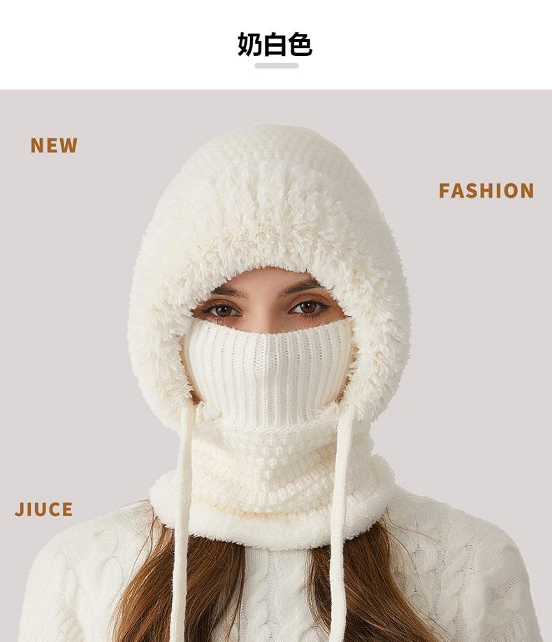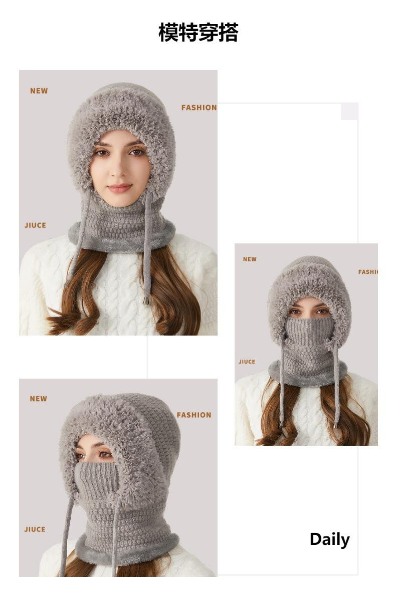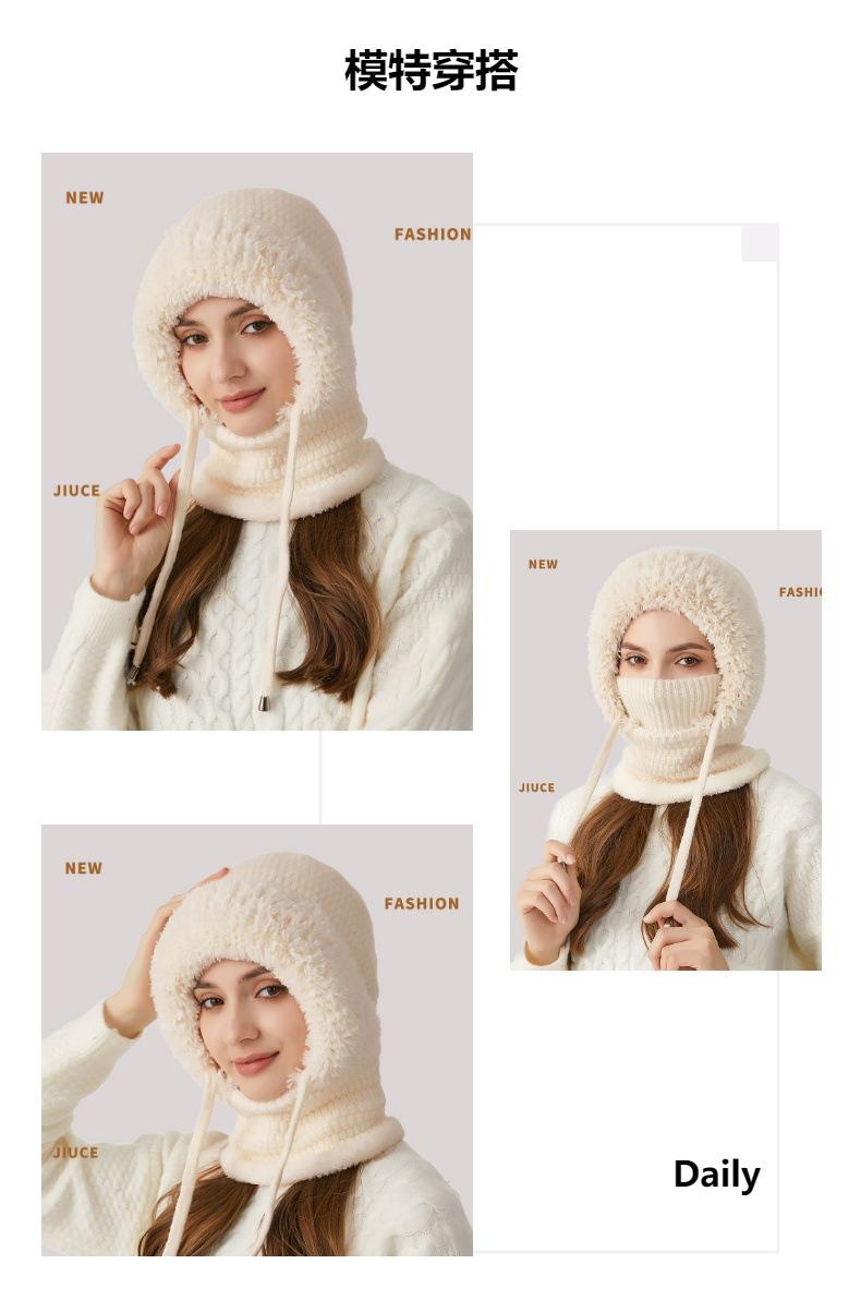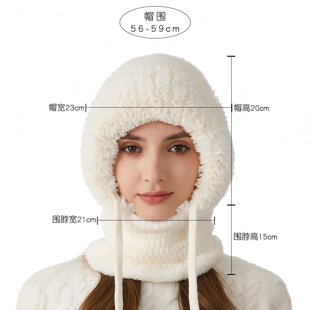 Gorro de Invierno para Mujer de Cabeza Grande Transfronterizo con Terciopelo y Engrosamiento para Cubrir la Cara, Gorro de Punto, Bufanda para el Cuello, Máscara, Kit Cálido