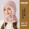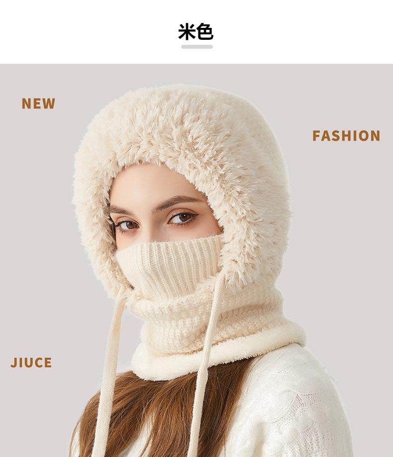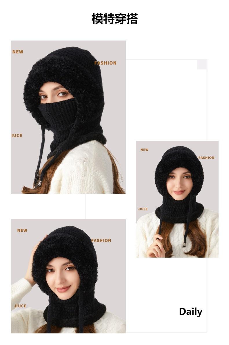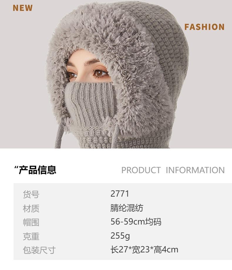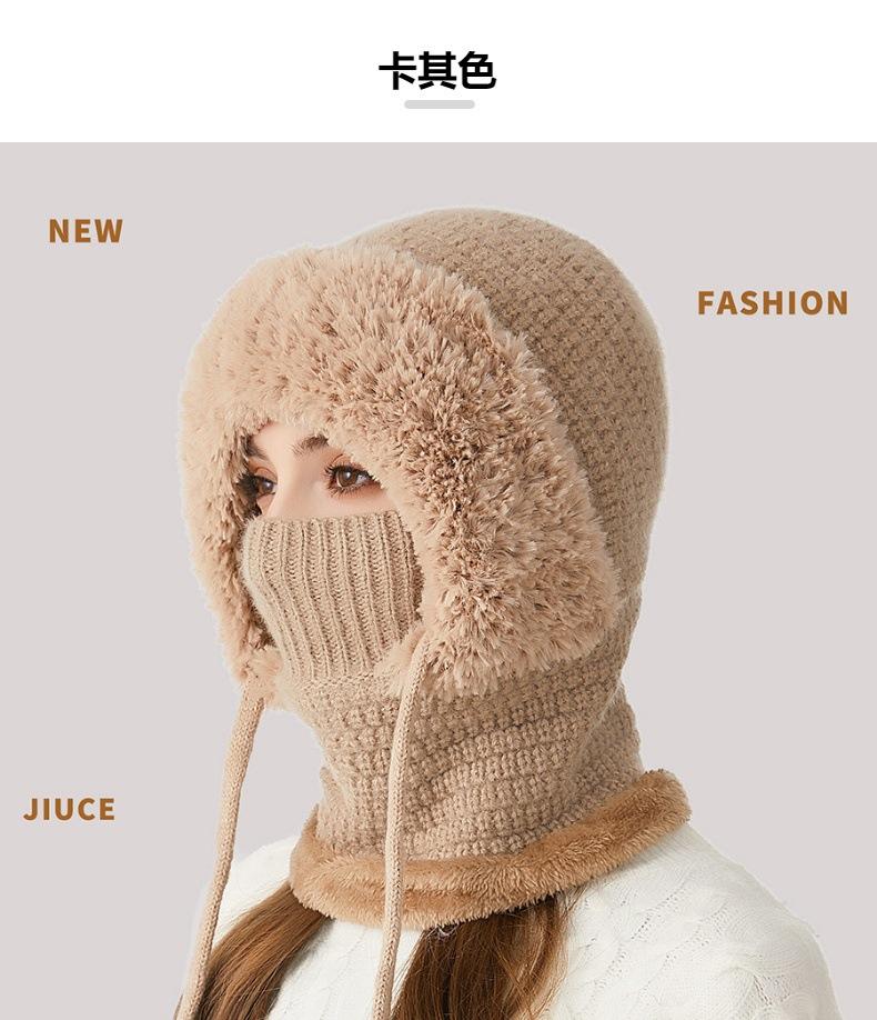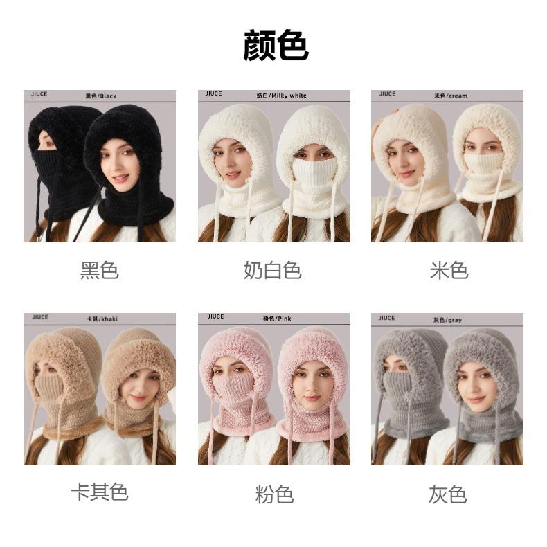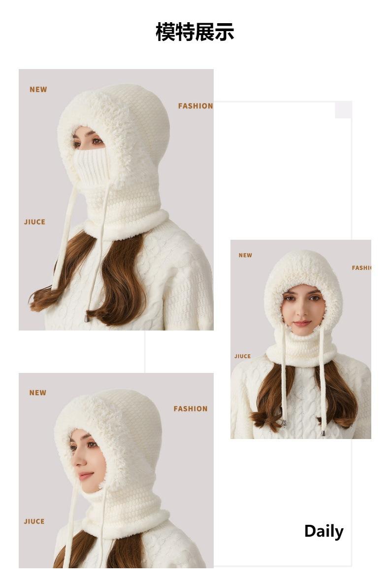 Gorro de Invierno para Mujer de Cabeza Grande Transfronterizo con Terciopelo y Engrosamiento para Cubrir la Cara, Gorro de Punto, Bufanda para el Cuello, Máscara, Kit Cálido