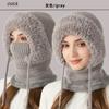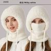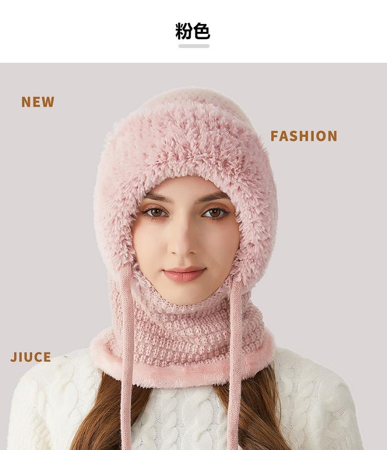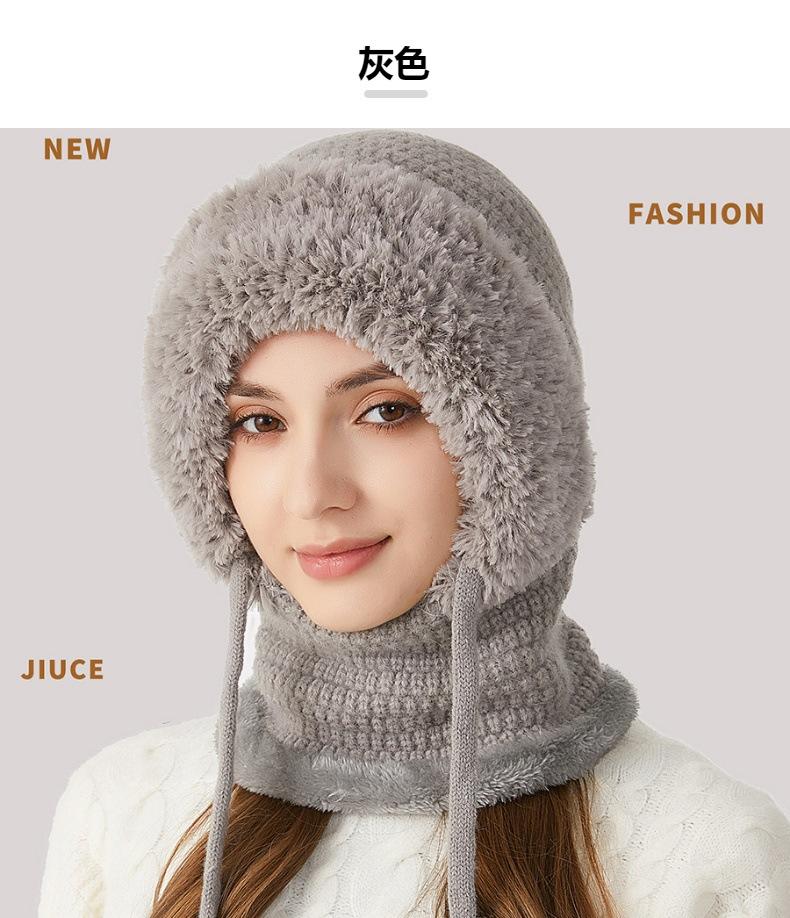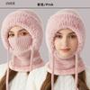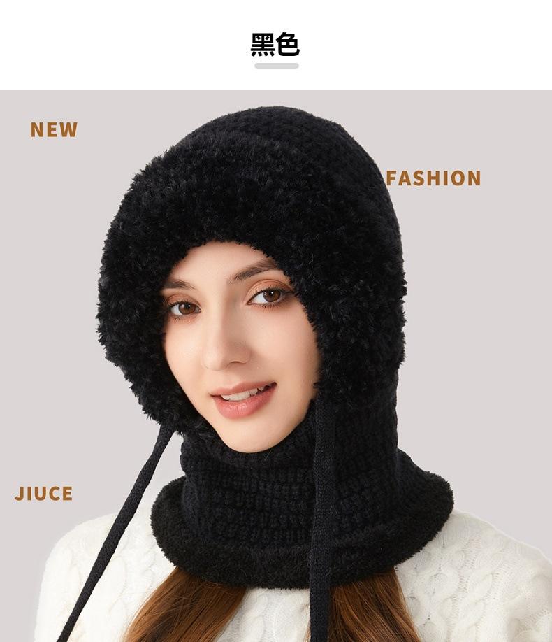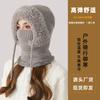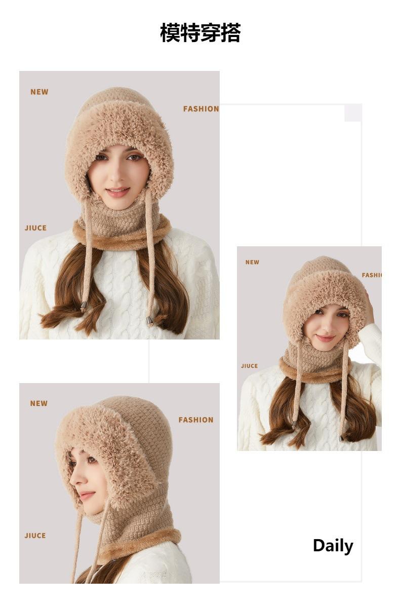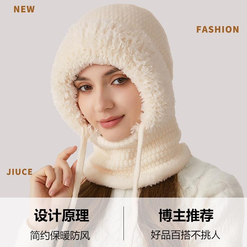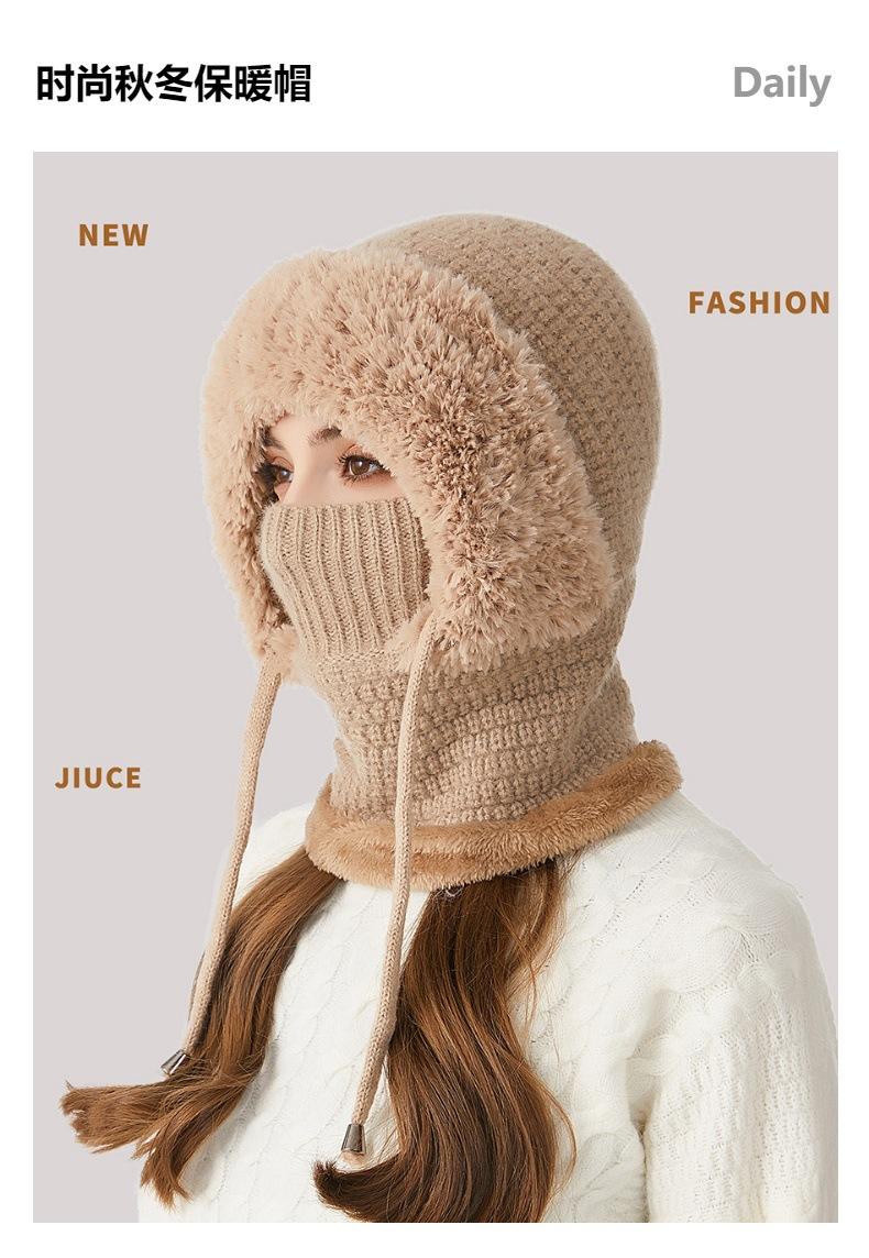 Gorro de Invierno para Mujer de Cabeza Grande Transfronterizo con Terciopelo y Engrosamiento para Cubrir la Cara, Gorro de Punto, Bufanda para el Cuello, Máscara, Kit Cálido