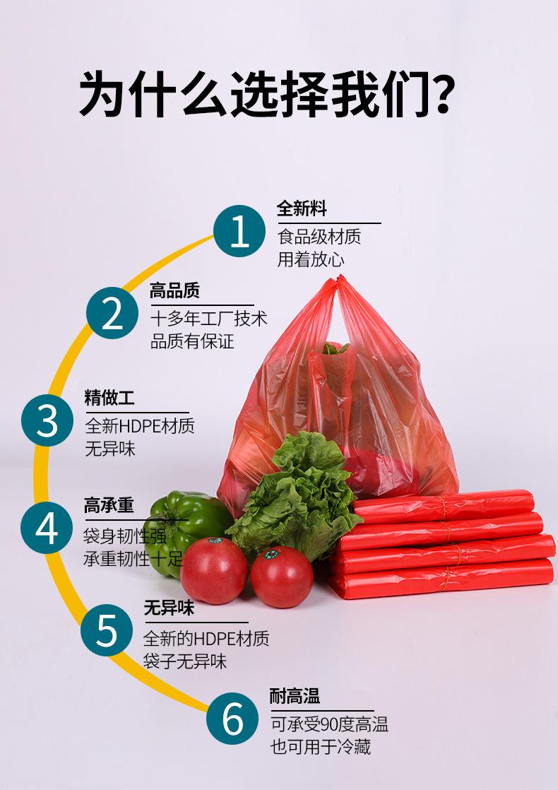 Bolsa de Plástico Rojo Engrosado, Bolsa Tote Desechable para Empaque, Bolsa Conveniente para Empaque, Bolsa Transparente para Alimentos al Mayoreo