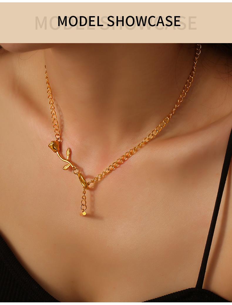 Collar de acero de titanio con colgante de rosa de amor, diseño hueco, joyería elegante y de personalidad simple de moda para el Día de San Valentín.