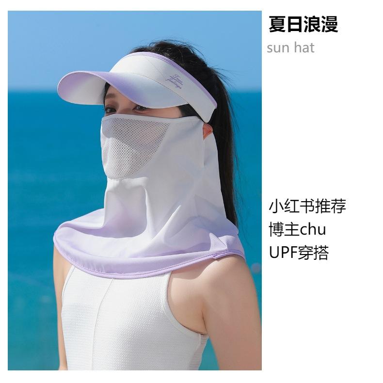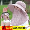 Protección solar sombrero de copa vacío para mujer verano seda de hielo sombrero fino para el sol montar en coche eléctrico cara completa protección UV velo sombrero