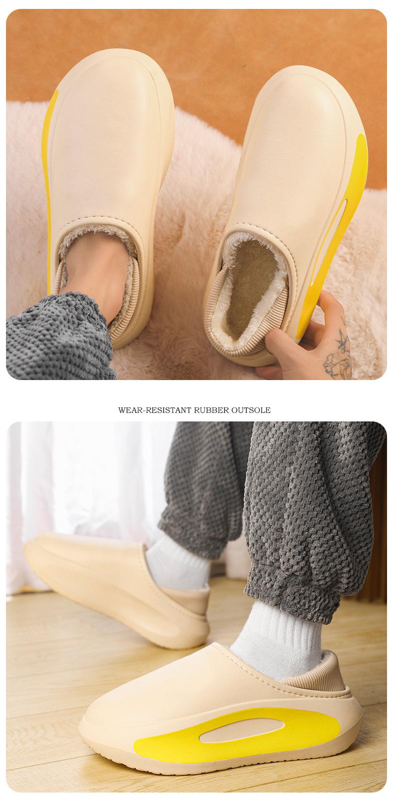 Pantuflas de Algodón Casuales Nuevas para Hombre Invierno para Pareja Bolsa con Forro Polar con Sensación de Mierda Cálidas Impermeables para Casa Pantuflas de Cabello para Padres e Hijos
