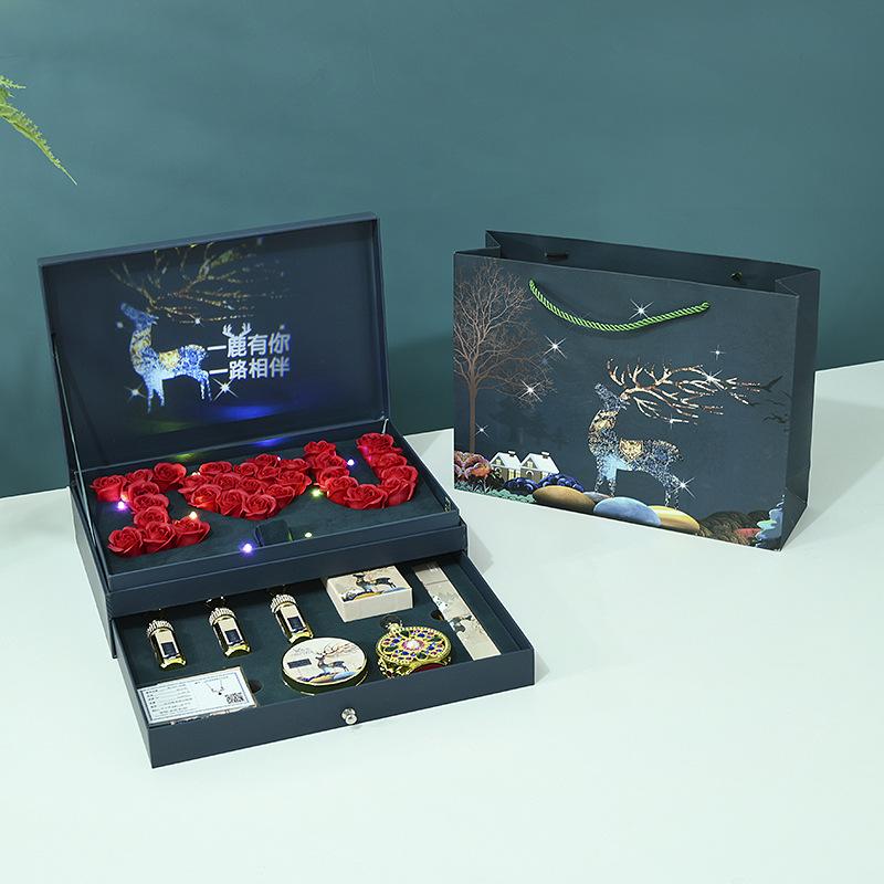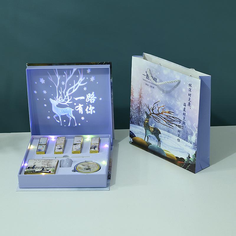 Caja de regalo con juego de maquillaje y lápiz labial con proyección de música y luz navideña, caja de regalo para San Valentín, caja de embalaje para cosméticos¥140Compre ya