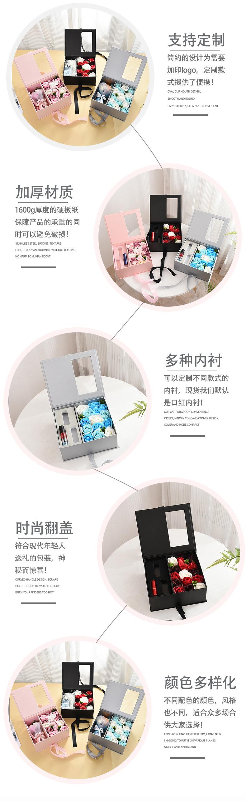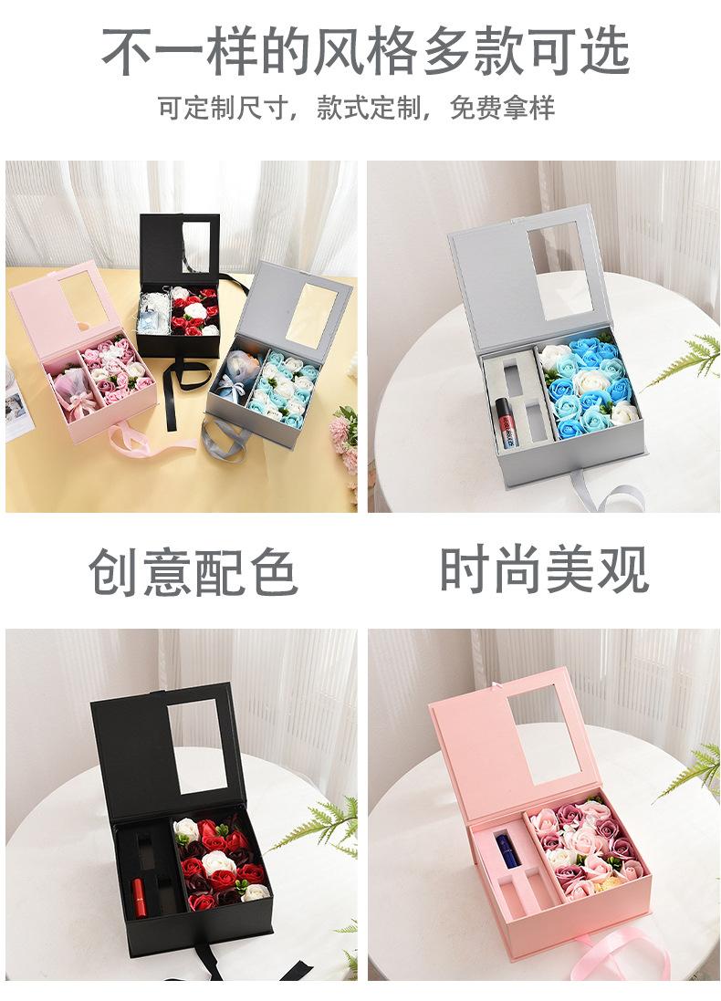 Nueva caja de joyería giratoria de doble capa con rosas, caja de embalaje con flores sorpresa para San Valentín, caja de regalo para lápiz labial de cumpleaños