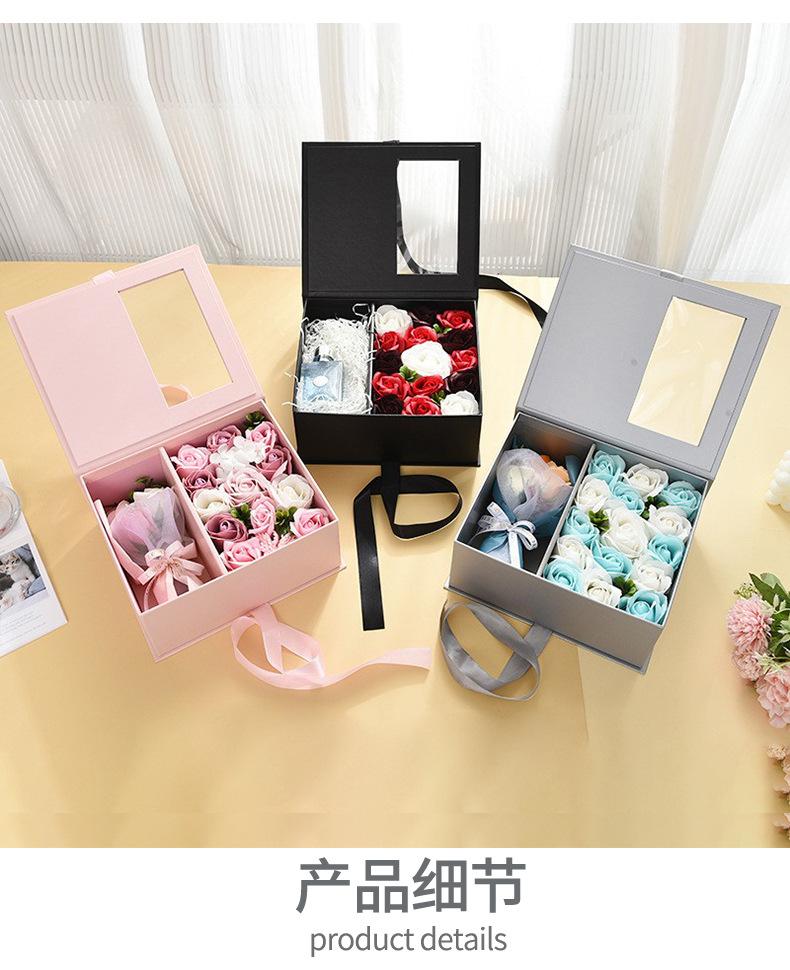 Caja de regalo cuadrada para San Valentín coreana, con diseño creativo de flores y ventana, ideal como regalo para dama de honor.