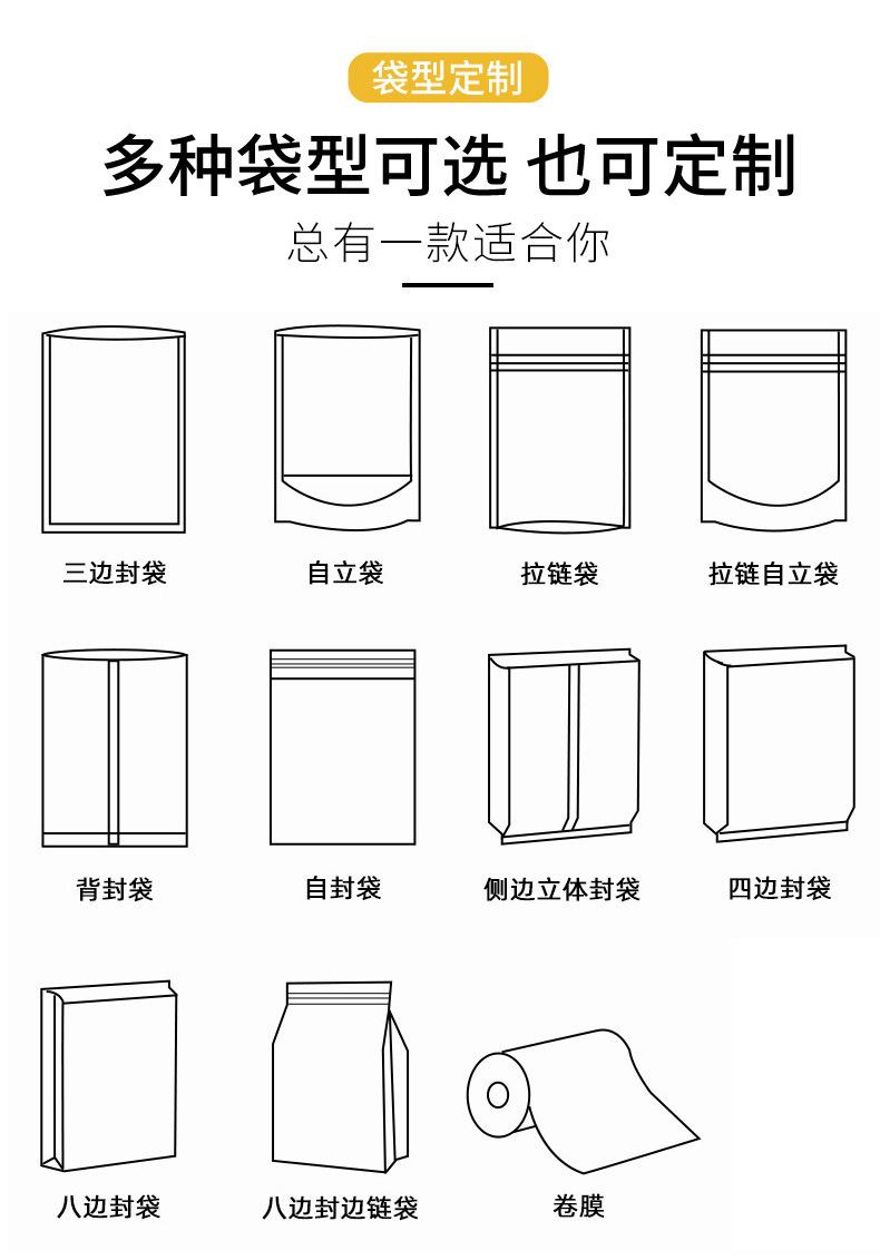 Bolsa de papel de aluminio para té rollo de película personalizada lote pequeño bolsa de sellado de tres lados bolsa con cierre ziplock bolsa de embalaje de café bolsa personalizada para frutos secos