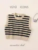Suéter de estilo coreano para niños, chaleco sin mangas para niños y niñas, chaleco a rayas para bebés, jersey de cuello redondo de otoño e invierno, chaleco de punto